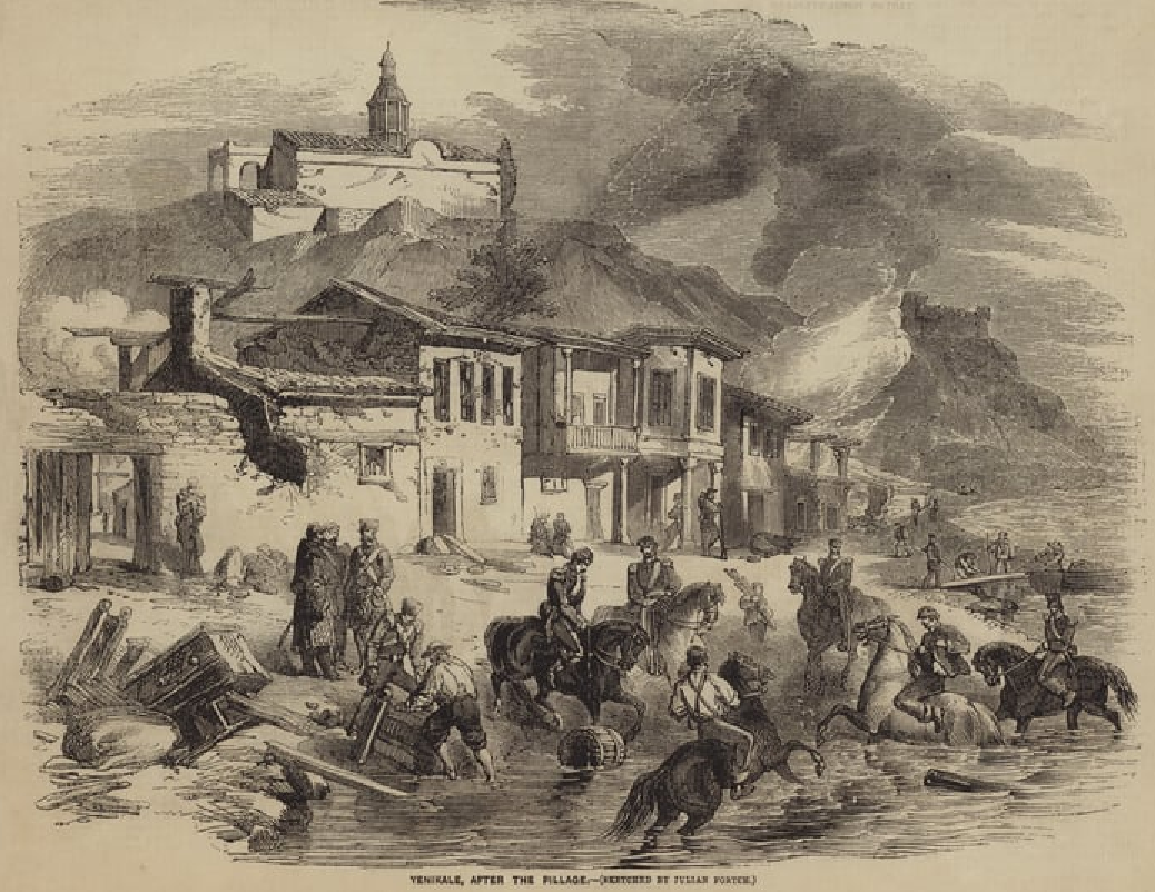 Между союзниками, обосновавшимися в Керчи, и восточной группой русских войск простиралась довольно обширная буферная зона. Летом, осенью и даже в начале зимы 1855–1856 гг. здесь происходили стычки между отрядами союзников и казачьими разъездами, которые посылались от линии русских аванпостов. Целью неприятельских отрядов было изъятие у местного населения фуража, продовольствия, а затем и топлива — всего, чего так не хватало союзникам в разорённой Керчи.