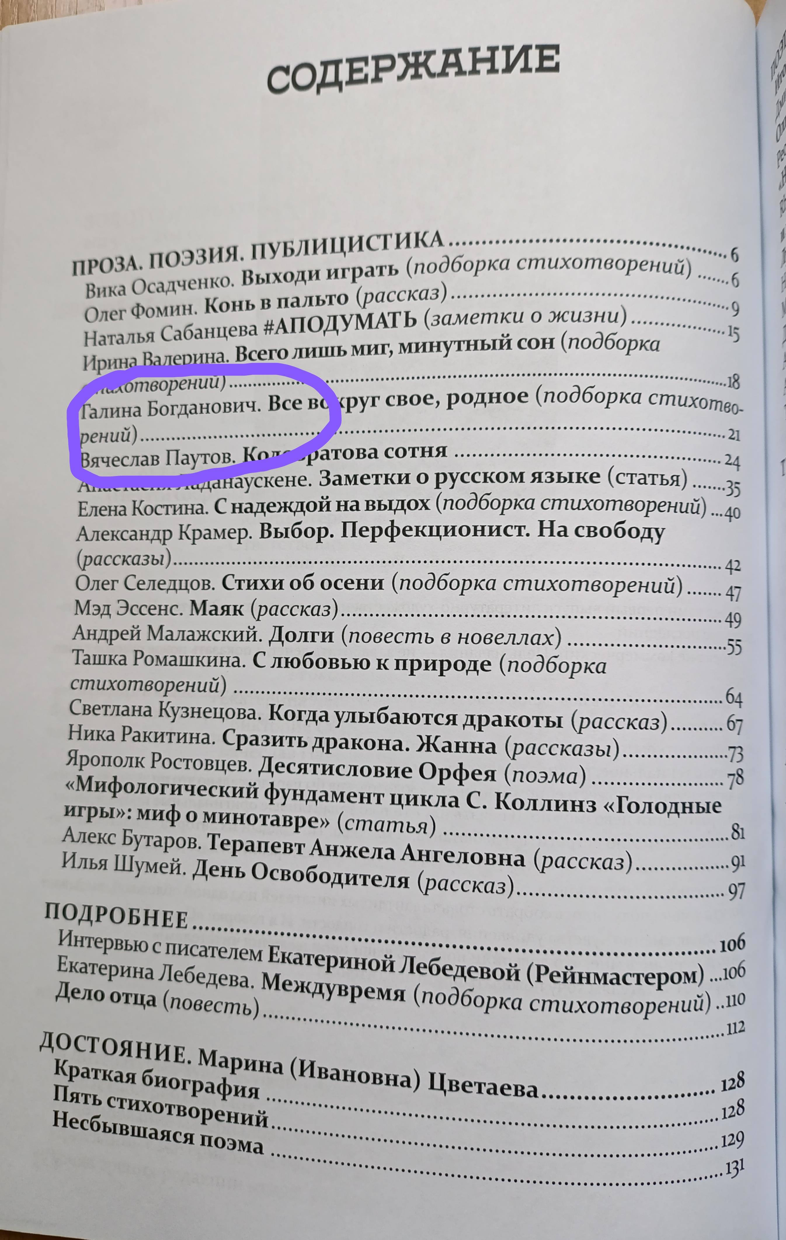 Среди моих произведений для публикации были выбраны стихотворения о природе. Подборка моих стихотворений называется "Все вокруг свое, родное".