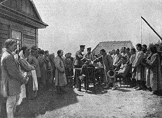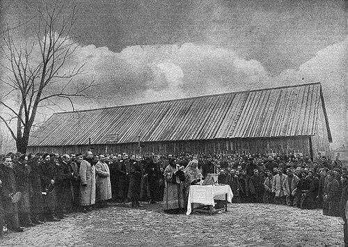 1908 год. Молебен перед отправлением 1400 полтавских крестьян-ходоков в Тобольскую и Оренбургскую губернии