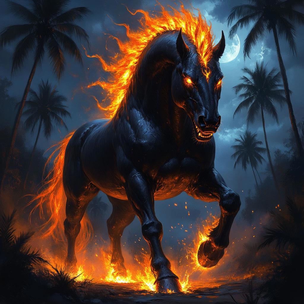 Невидимая волна, словно дрожь, прошла по скакуну. Он вздрогнул, взмыл на дыбы и огласил округу ржанием, забил копытами в воздухе. Когда же они вновь опустились на мостовую, из-под них полетели искры, а на мир смотрели желтые глаза, пылающие огнем. Из раздутых ноздрей вырывался пар, похожий на дым, и даже грива будто подернулась пламенем.