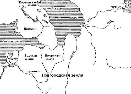 на севере — Корельской землёй по реке Сестре и Лемболовским высотам