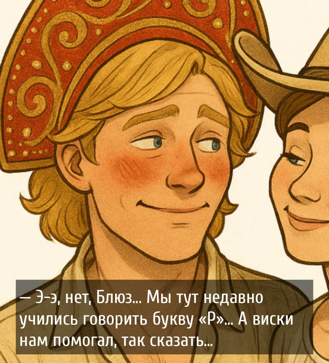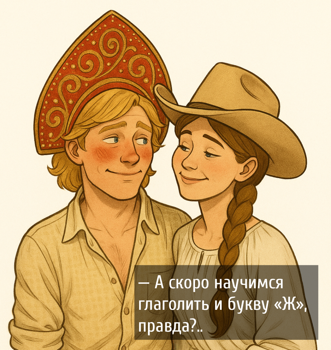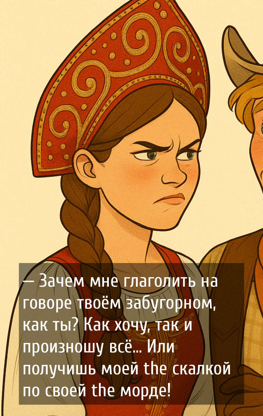 Но теперь остаются проблемы у нашей девы с гуслями, которой наверняка будет тяжело проговорить, к примеру, его заморское «th» и попытаться не сломать себе язык. Хотя она в любом случае не стала бы церемониться.