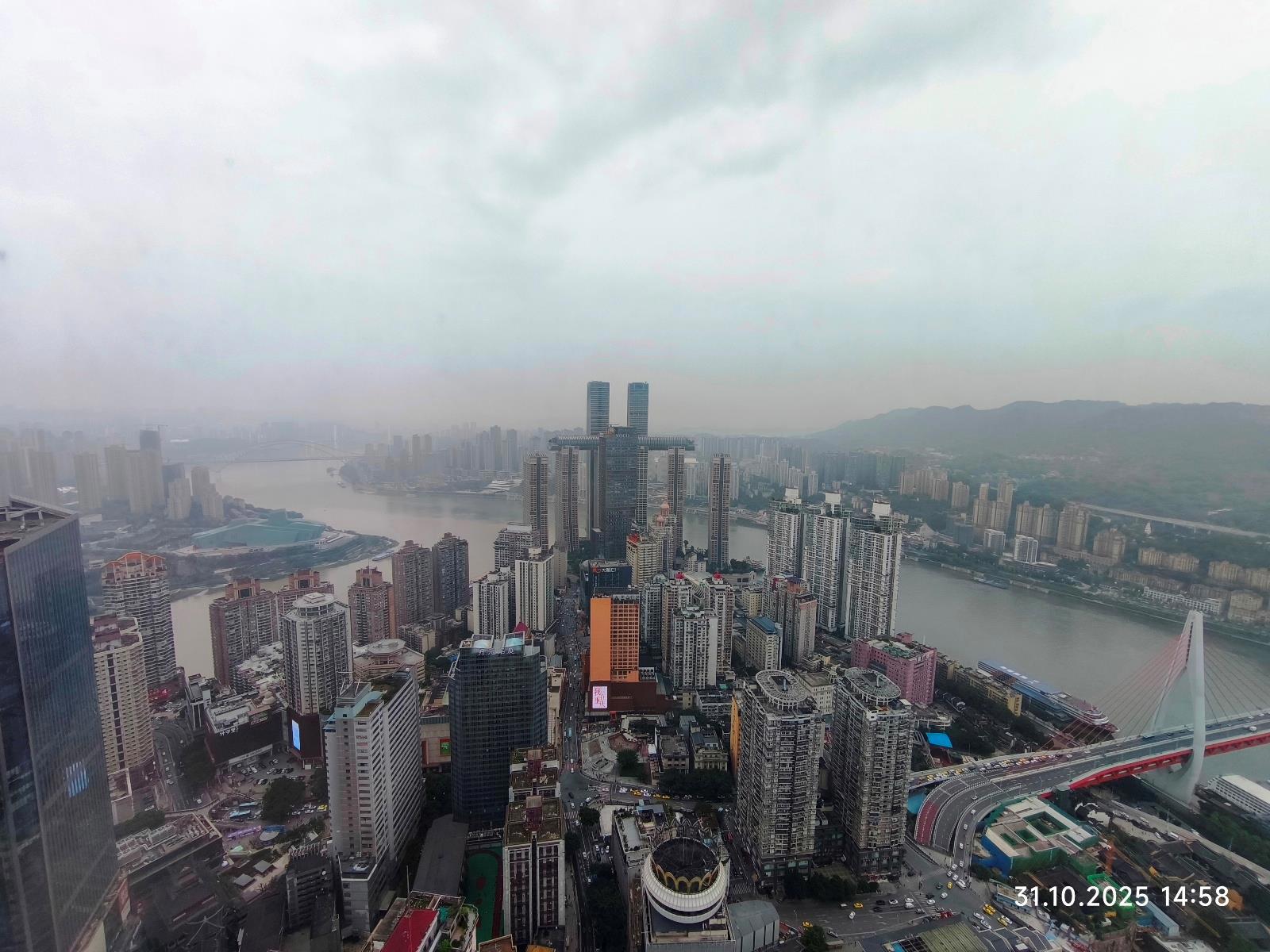 1. Вид из моего номера в Чунцине, 60-й этаж. Номер вполне обычный, стоит в 2 раза дешевле любого отеля возле Шереметьево.