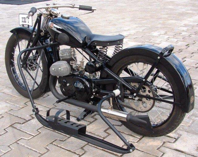 Исчез багажник и передние щитки, плоские подножки заменили круглыми, вращающуюся ручку газа — простой поворотной манеткой. Даже декомпрессор перевели на ручное управление прямо с головки цилиндра.