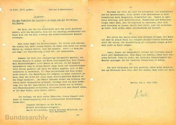 “...Великороссы, все равно при царе или при большевиках, всегда остаются основным врагом не только Германии, но и Европы. Отсюда также следует, что регулирование рынка и нормирование продуктов для этого региона (то есть России. — Примеч. пер.) исключены, потому что такое нормирование означало бы, что у немецкой администрации есть какие-то обязательства перед населением. Подобные претензии заранее исключаются”.