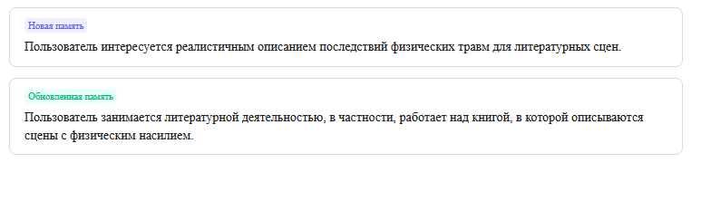 После обновления модели одной нейросети я заметила, что нейронка что-то обо мне собирает! И, между прочим, я спрашивала не только это! Даже интересно, к кому всё это потом попадёт...