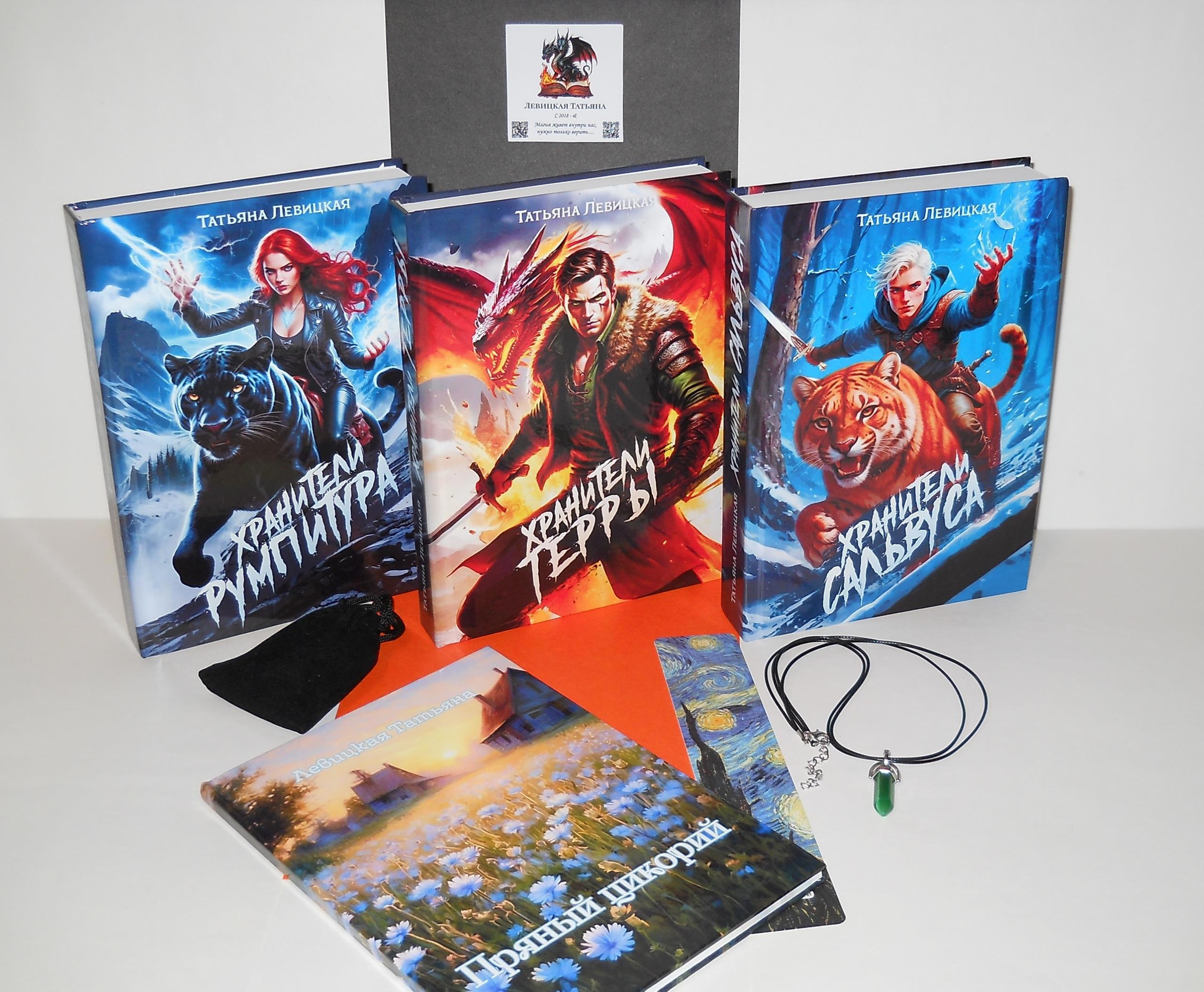 Трилогия «Хранители Терры» от классного автора Татьяны Левицкой в бумажном виде выглядит так же эпично, как и читается. И дело не только в обложках, от которых трудно взгляд оторвать, но и в оформлении. Корешки приятные на ощупь и не оставляют следов. Тонкая офсетная бумага, а не какая-нибудь газетная, источает приятный аромат. Кстааати! Все содержимое боксика источает такой шикарный аромат, что можно закачаться! Теперь моя библиотека просто благоухает! Полка с детективами пахнет мылом от Альды Дио, а полка фэнтези и фантастики — духами от Татьяны Левицкой! И главное — ничего не смешивается!