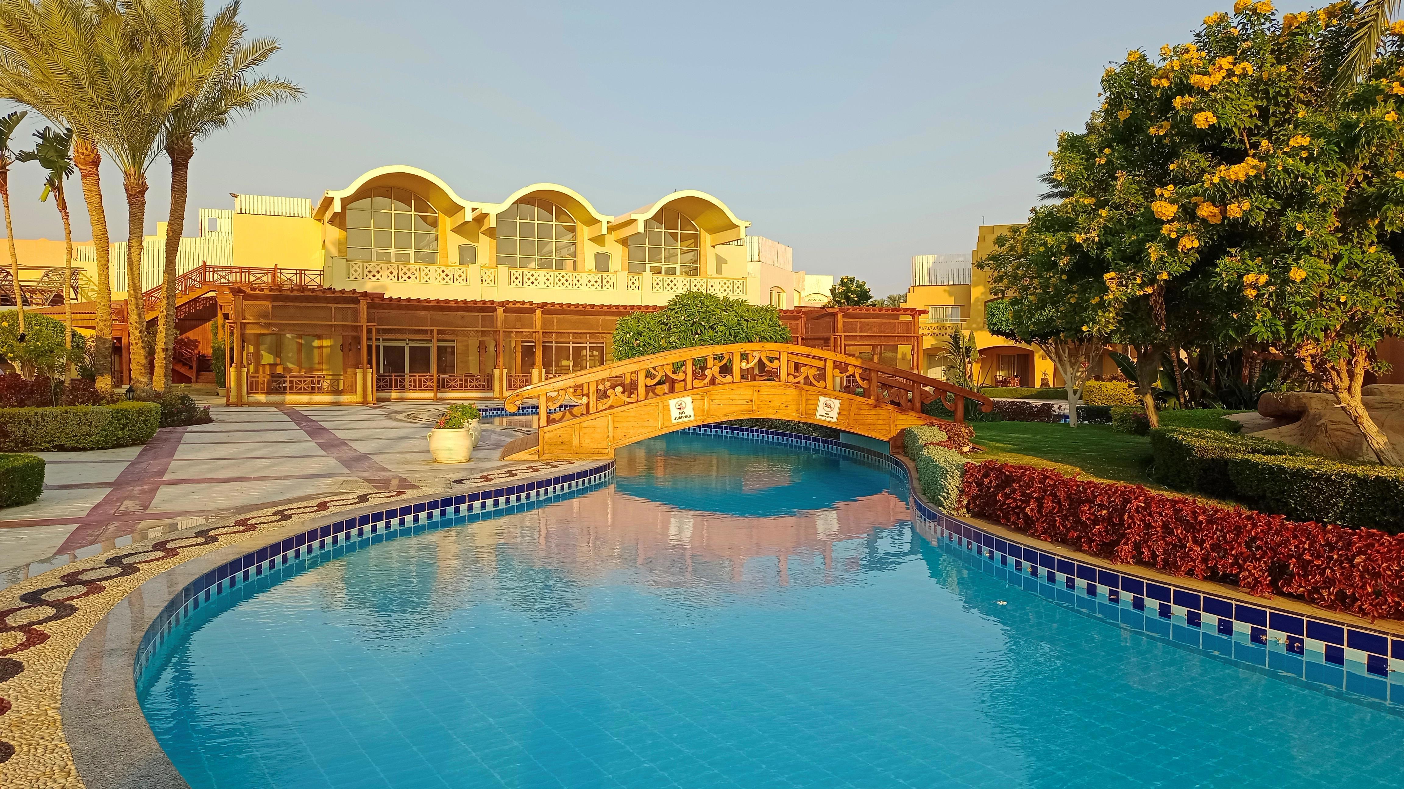 В отеле в Шарм-эль-Шейхе, где живём, всё стандартное, точно такое же, как в других египетских отелях. И стандартно-туристическое название "Гранд Плаза", и корпуса в восточном стиле, и бассейны, и обязательные деревянные мостики над ними, чтобы туристы на них фотографировались вволю.