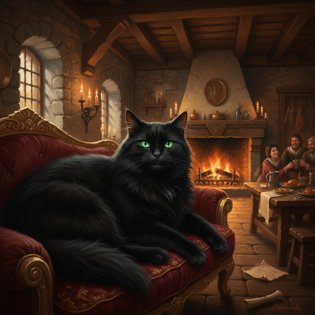 Разрешите представиться: Василий, хозяин “Золотого Тельца” и, между прочим, совершенно официальный пушистый руководитель самого вкусного заведения Залесья и всей Полусказки. Не просто кот — а Кот, который превратил кулинарные чары в искусство. Для друзей — Василий, для новичков — Василий Палыч, для самых смелых Рыжихъ Ведьм — Васенька. Если вдруг вы ещё не бывали у меня в "Тельце", спешу предупредить: почесывание пузика стоит дорого (скидктолько для своих!).