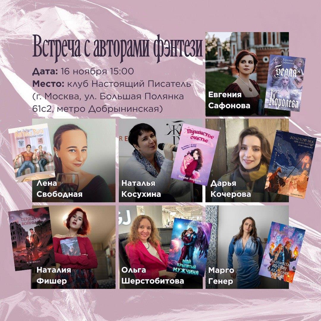 Да-да, уже в это воскресенье, 16 ноября, в 15:00 в клубе "Настоящий писатель" я, Наталья Косухина, Дарья Кочерова, Наталья Фишер, Евгения Сафонова, Ольга Шерстобитова и Марго Геннер!
