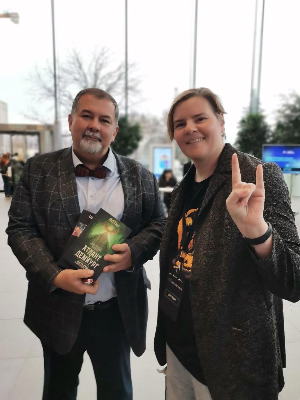 Также было крайне приятно повидаться с кучей знакомых, в частности с Максом Черепановым и прекрасным моим соавтором Катей Чернявской . Ну и радостно вручила книжечку Сергею Лукьяненко , без которого эта поездка вообще бы не состоялась, а у него взяла автограф на "Новый дозор", который теперь и осваиваю.