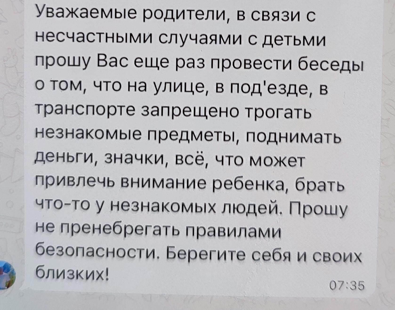 Мишонова также попросила всех родителей быть внимательными и предупредить своих детей о том, что ничего и никогда нельзя поднимать с земли, так как в ходе проведения спецоперации возможны любые провокации со стороны противника.