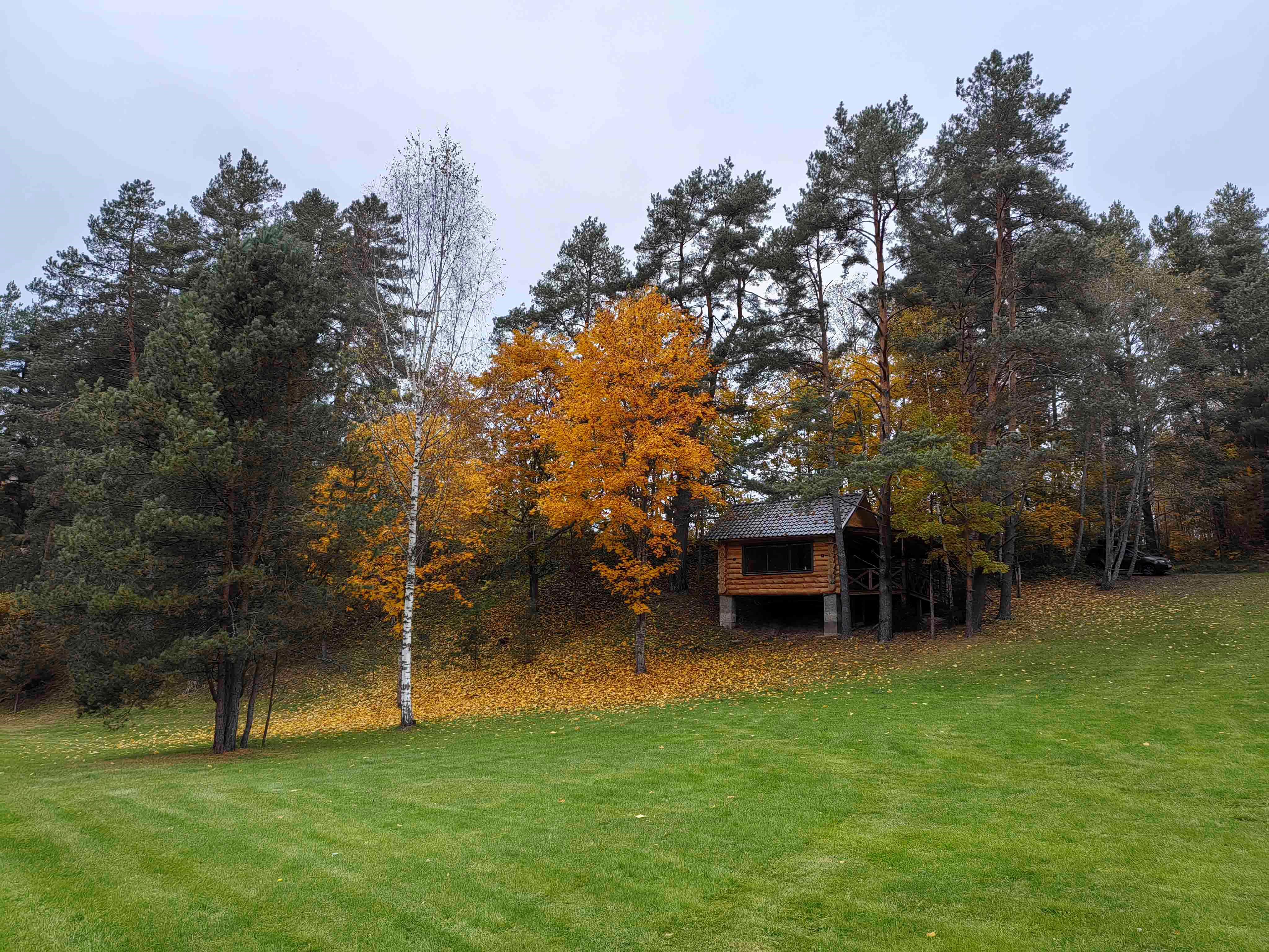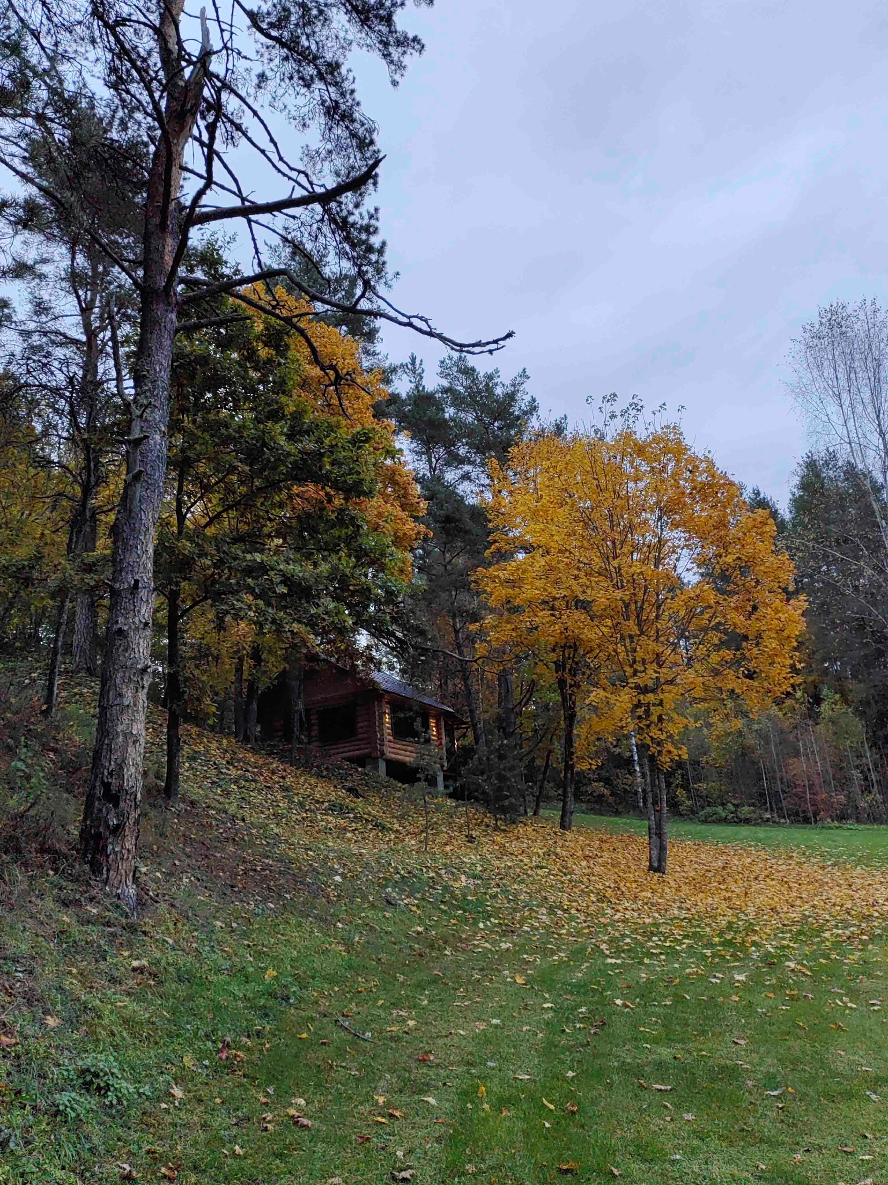 Времени у нас было немного, всего один вечер. Но осмотреться стоило. Поэтому мы прогулялись на ночь глядя вокруг домика и немного по лесу, далеко не забирались, чтобы случайно не забрести в Евросоюз. Природа тут, конечно, красивейшая. Золотая осень, можно сказать, Пушкинская…Кстати, отсюда до Пушкинской фазенды тоже недалеко. Погуляли, пожарили шашлыков возле коттеджа, выспались, и с утра покатили домой. Отпуск удался.