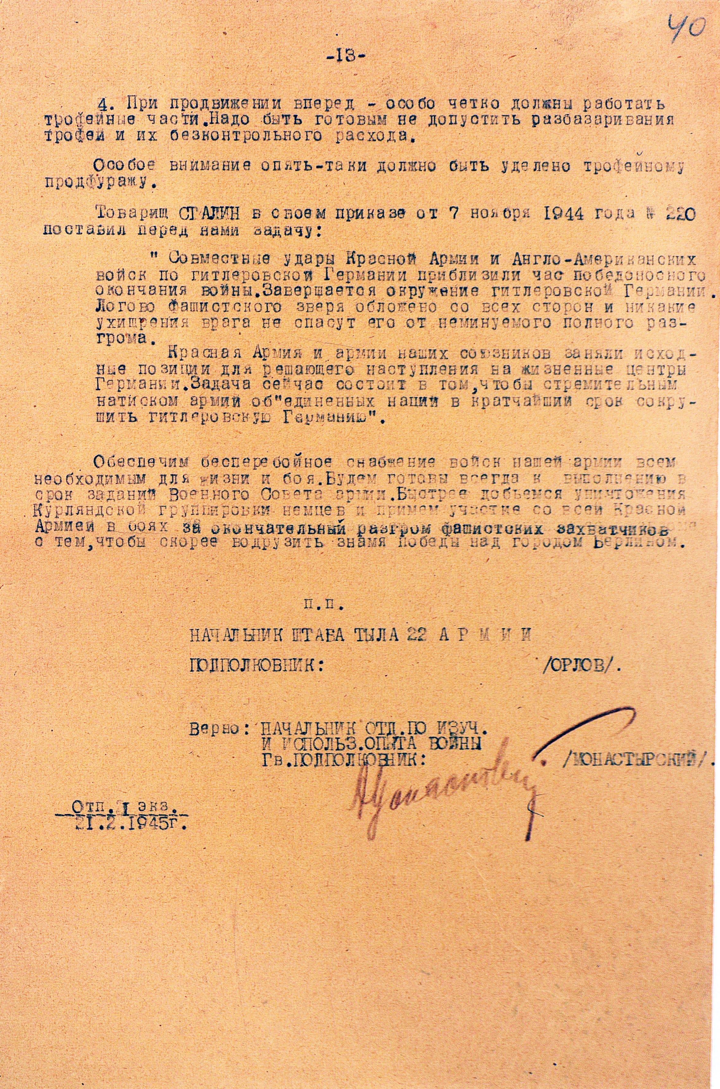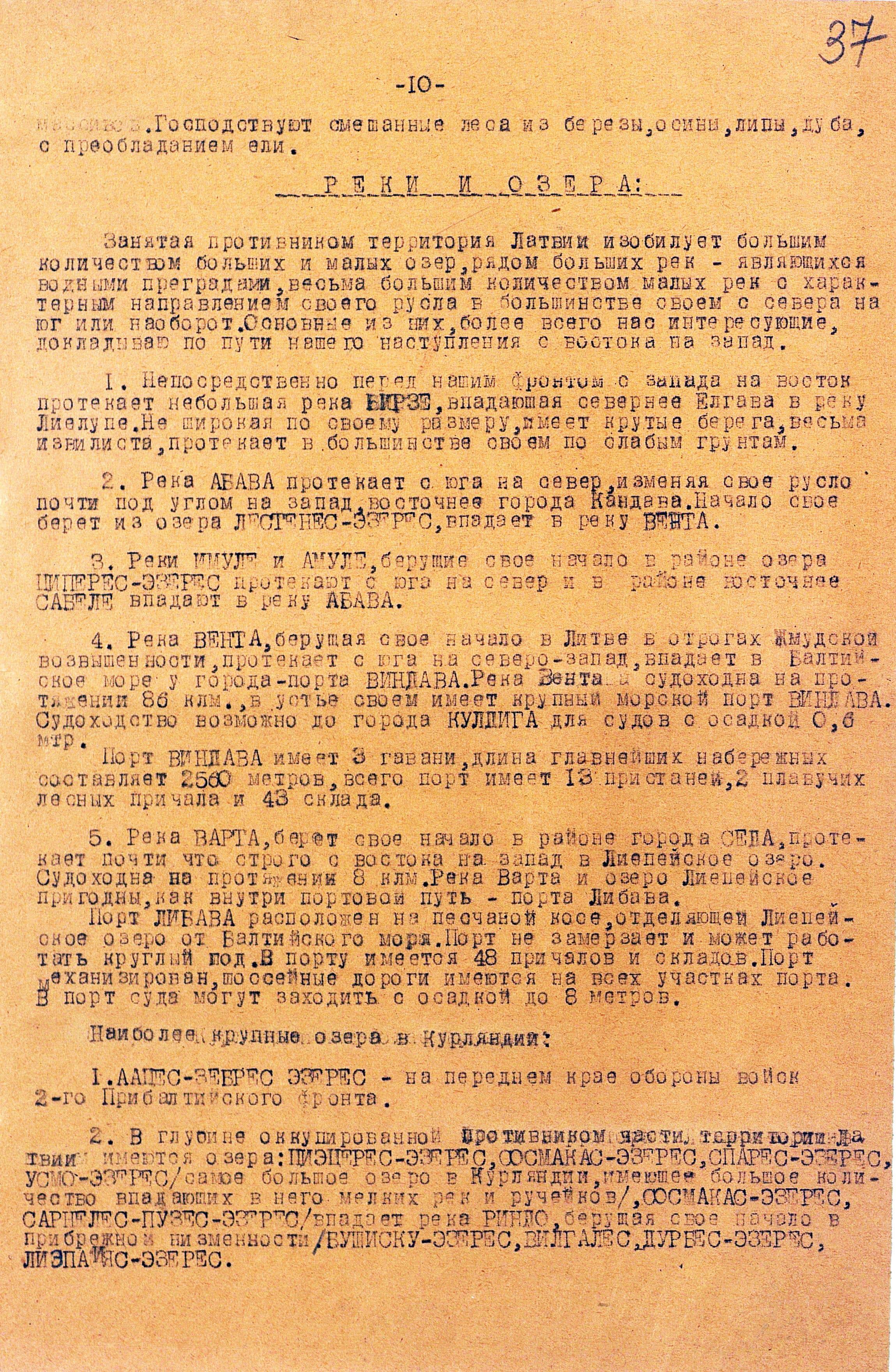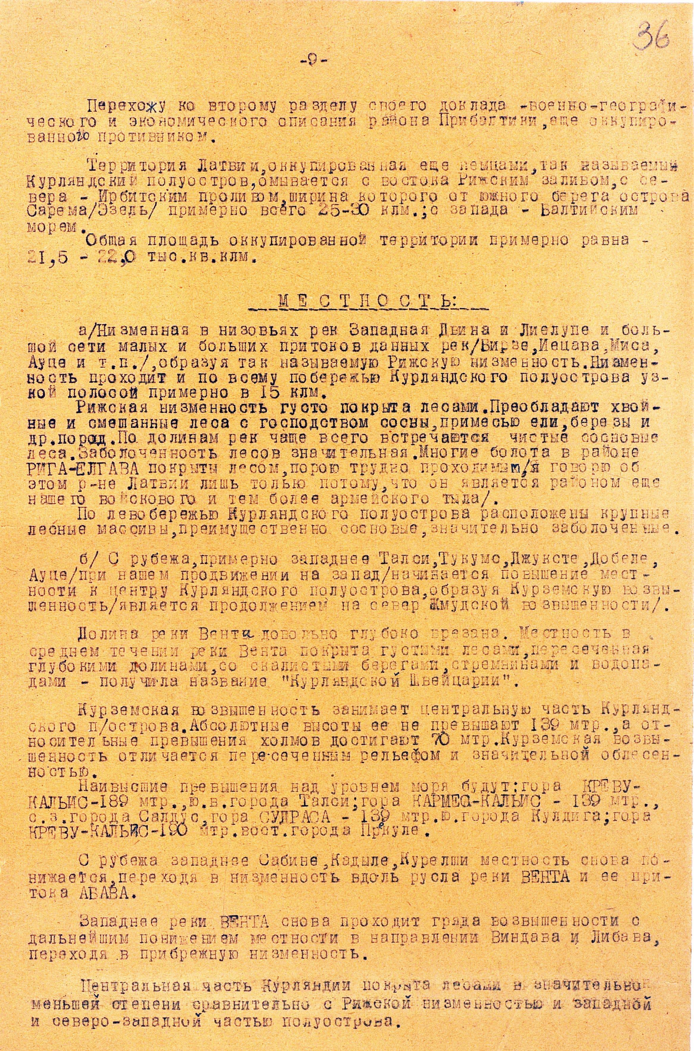 Вашему вниманию представляется доклад начальника штаба тыла 22 армии подполковника Орлова В.С. на тему «Характеристика противника и военно-географическое описание Курляндского полуострова».
