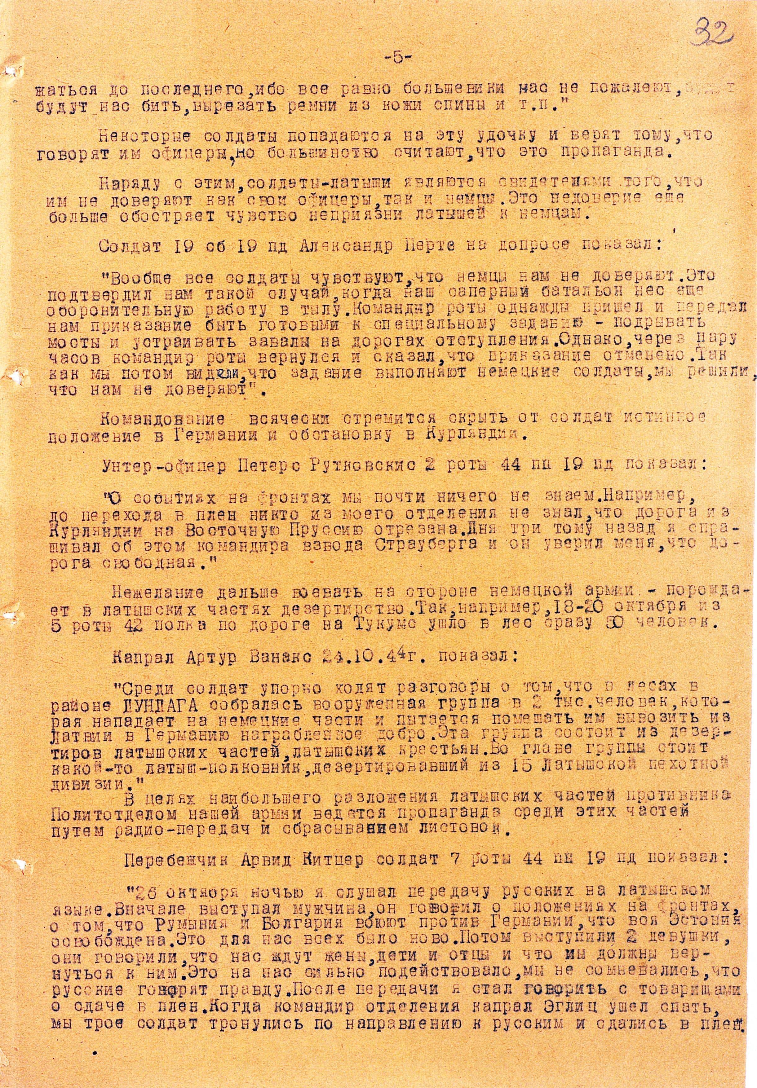 - настроение латышских частей противника (19 лпд СС и 106 лгп СС);