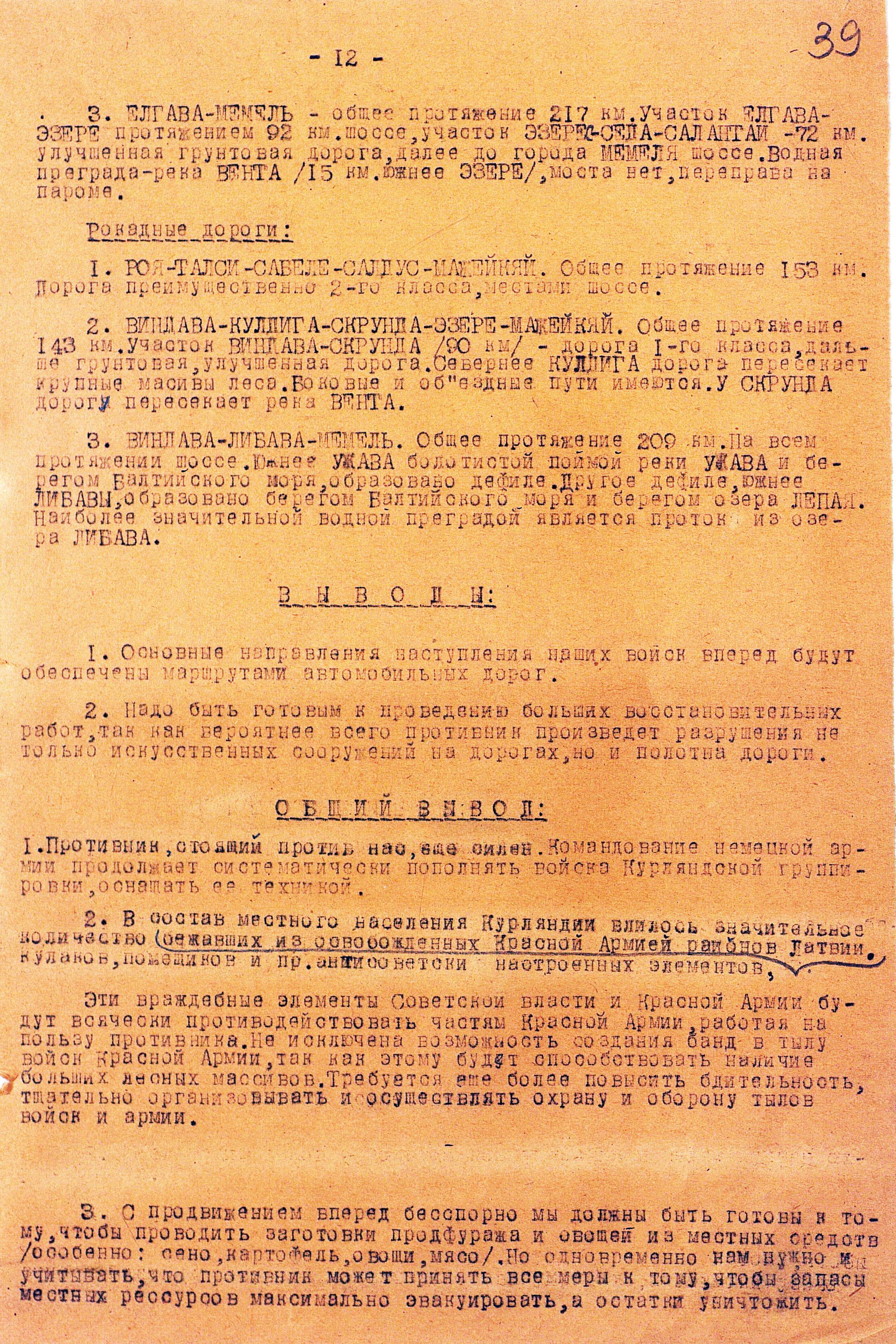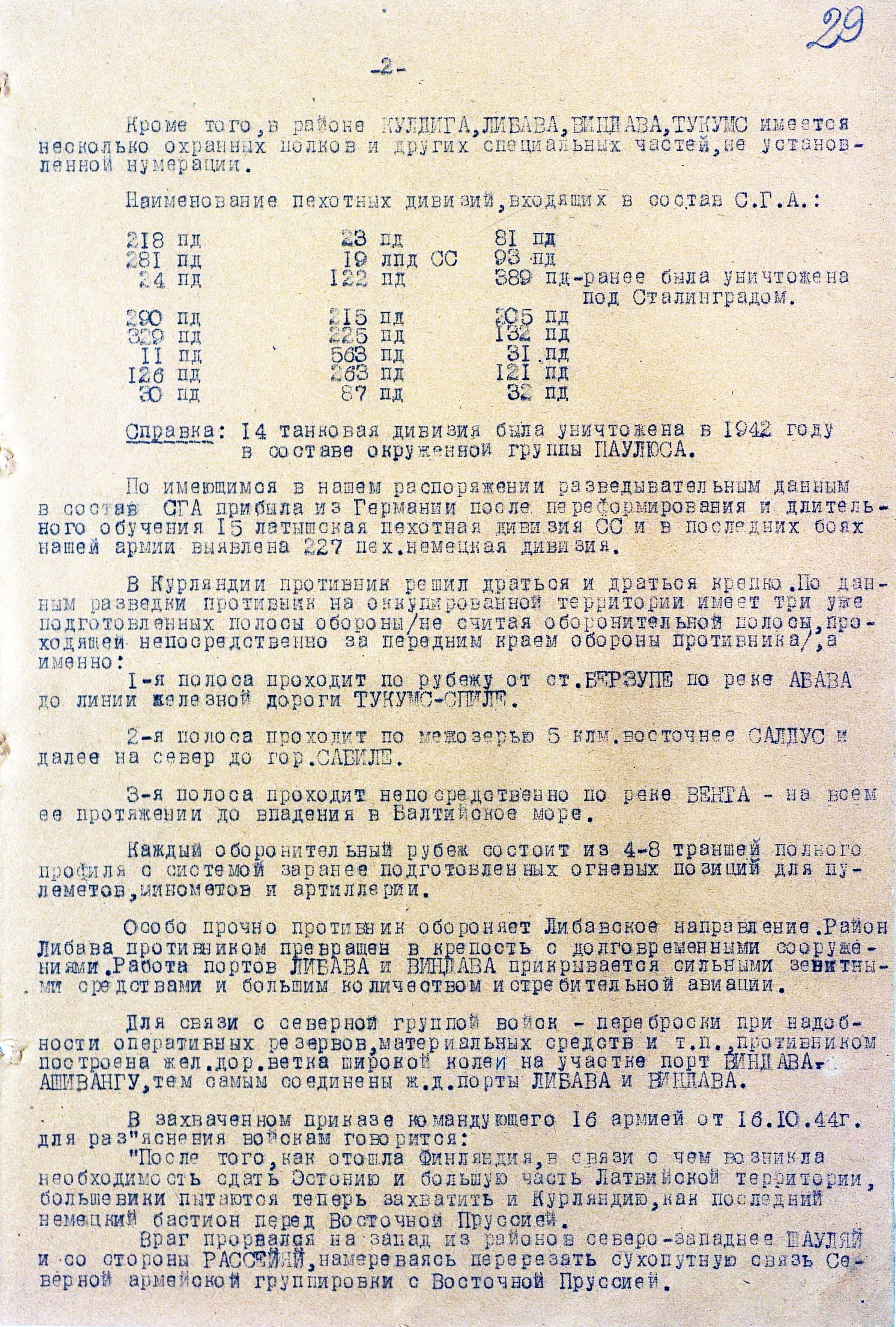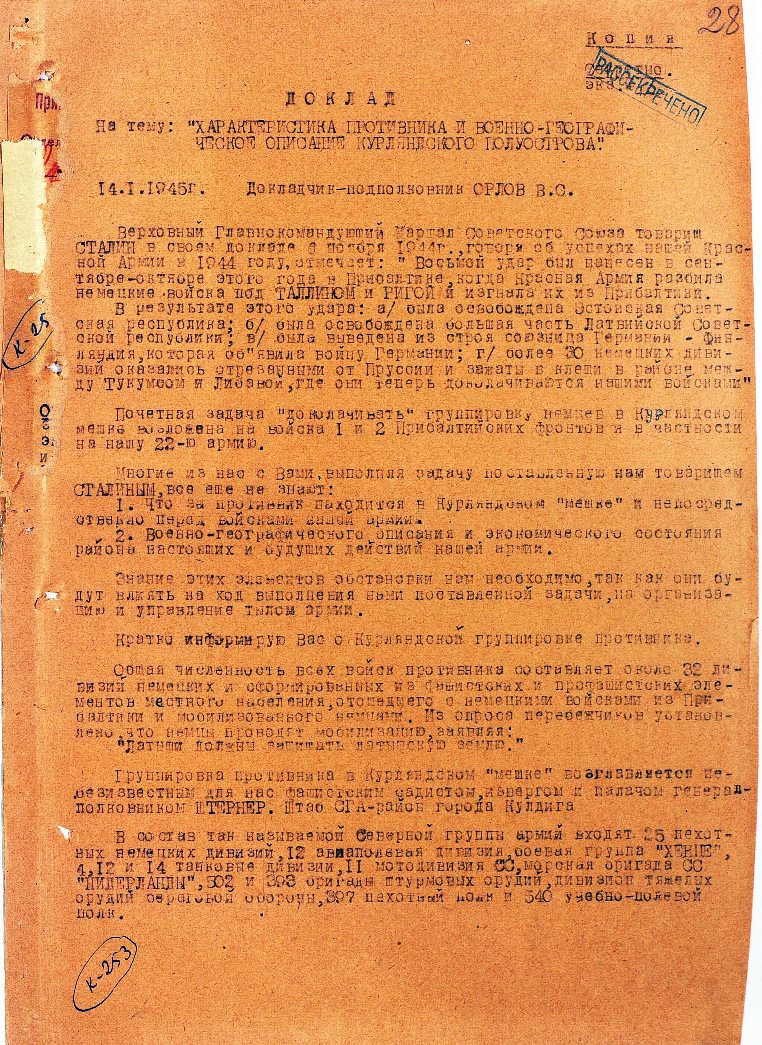 "Характеристика противника и описание Курляндского полуострова". Доклад 1945 г., январь