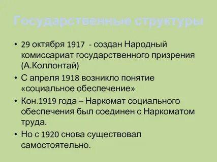 Однако не смотря ни на что глава Советского Правительство Ленин подписывает в эти дни постановление об учреждении Народного Комиссариата Государственного Призрения - Отдел защиты материнства и детства, Приюты для беспризорных детей, поддержка при потере трудоспособности или безработице и т.д., и т.п.