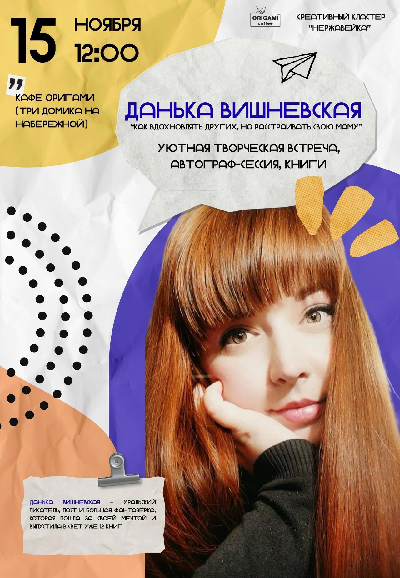 Расскажу о своём творческом пути, поделюсь писательскими лайфхаками и отвечу на все интересующие вопросы. Надеюсь на тёплую встречу в родном городе.