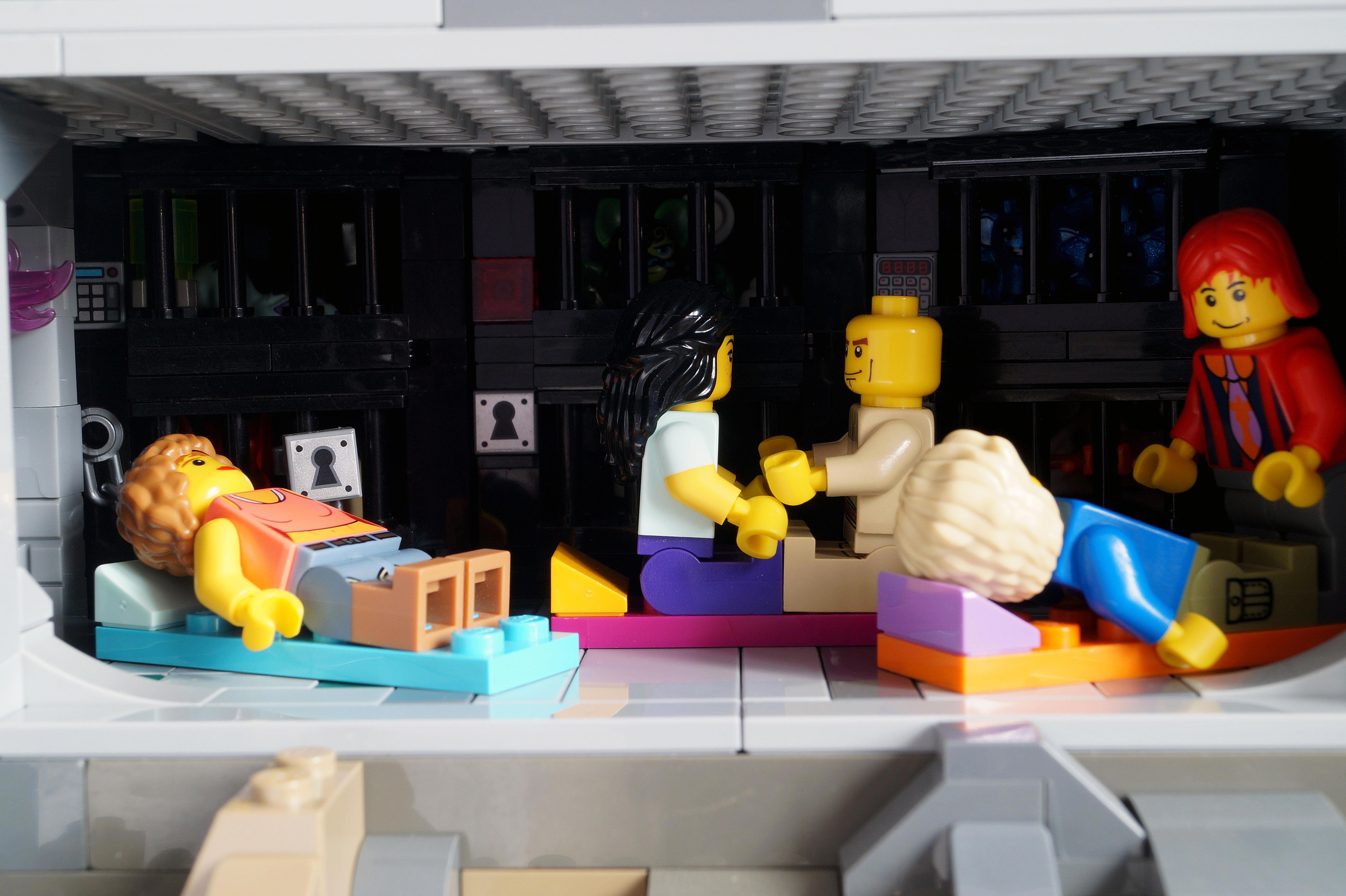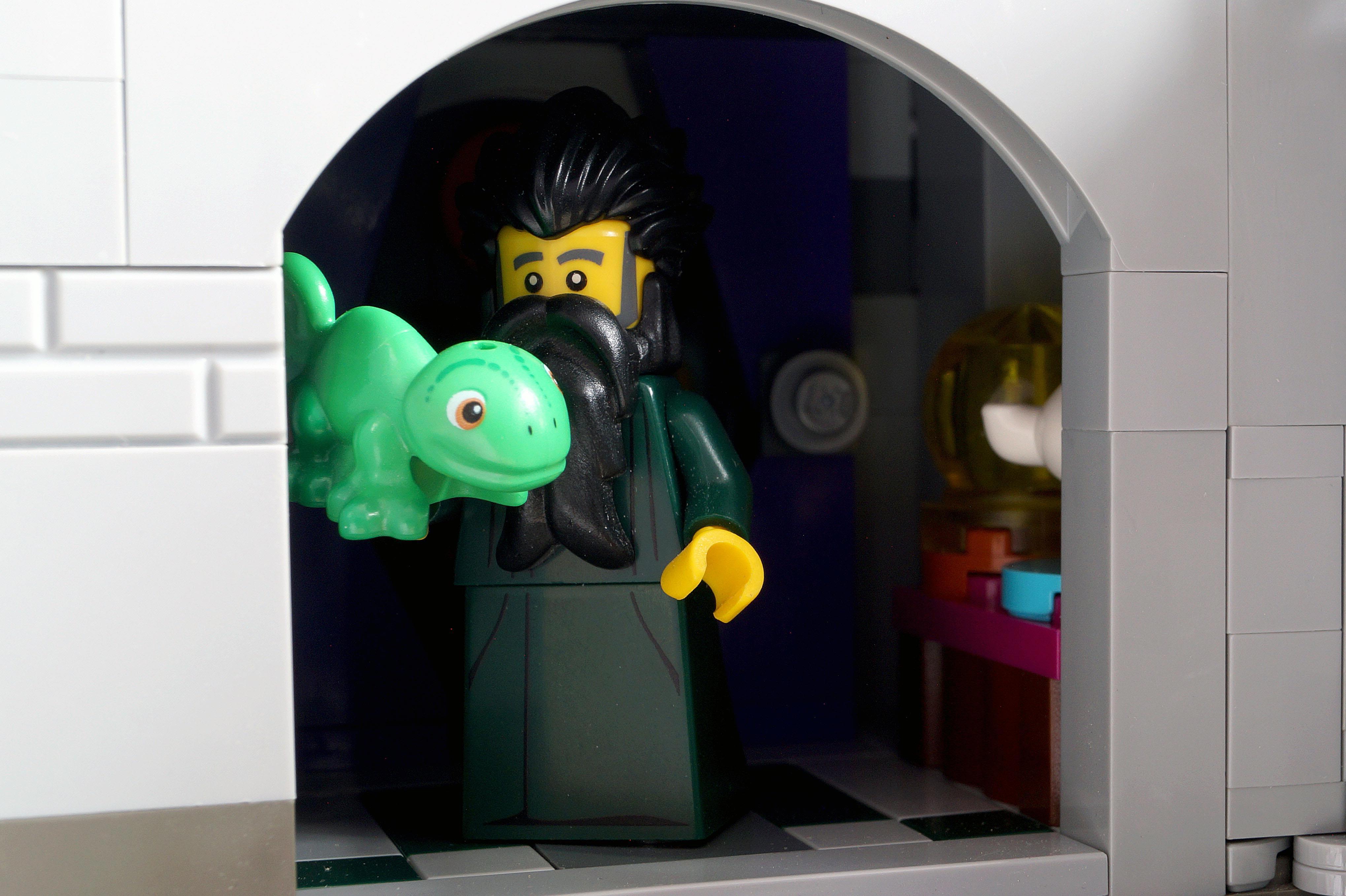 В модели Замка из LEGO тоже есть подземелье Акрантофиса. Я немного нарушил канон и поместил его под Аудиториумом и лишь небольшую часть - под Малой Башней, потому что там совсем немного места. Круглую форму помещения я изобразил расположенными под углом клетками с животными. Точность не самая высокая, но в таком масштабе сложно сделать иначе.