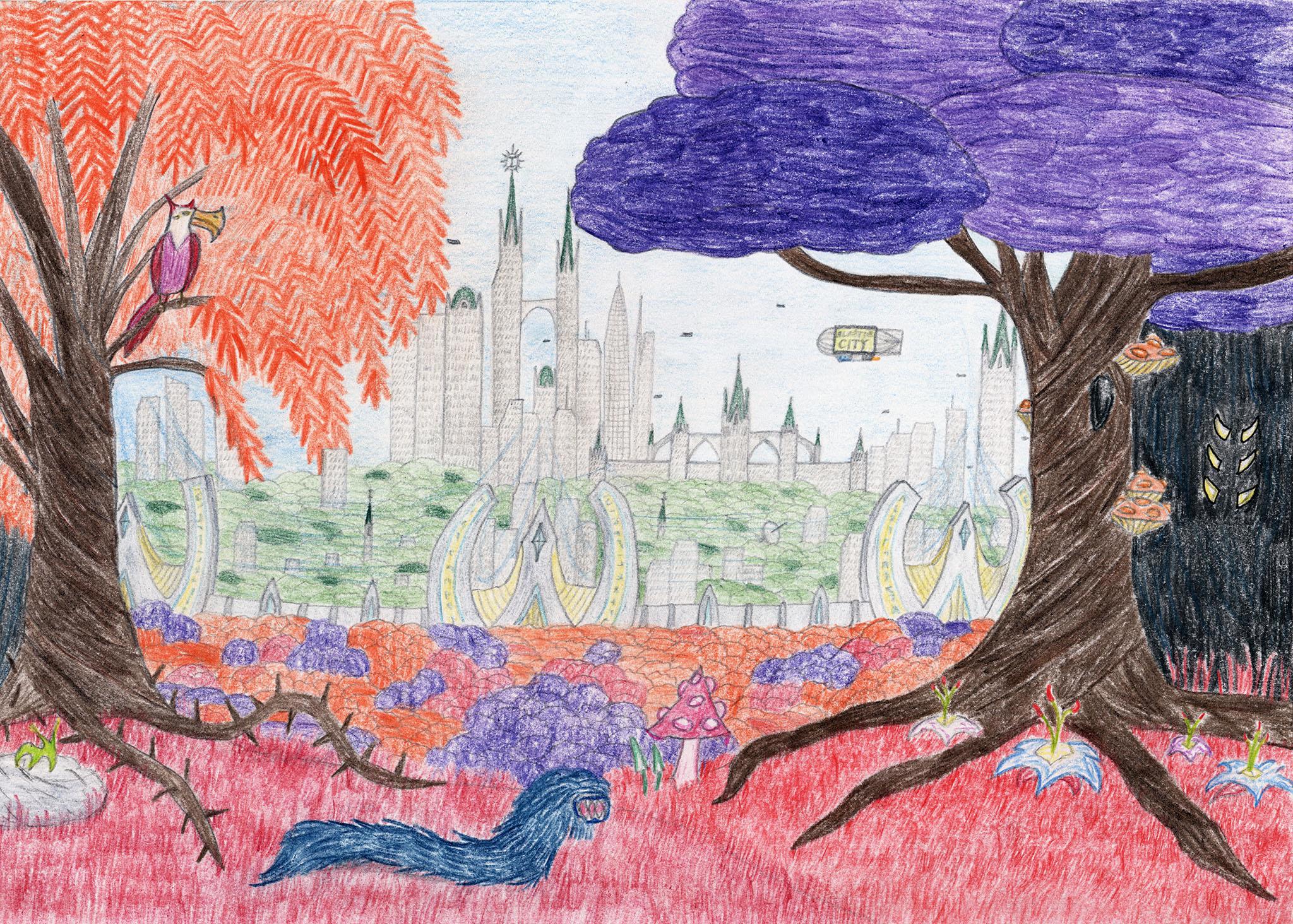 Имперский город и дикий Лес на планете Аластория. Иллюстрация автора.