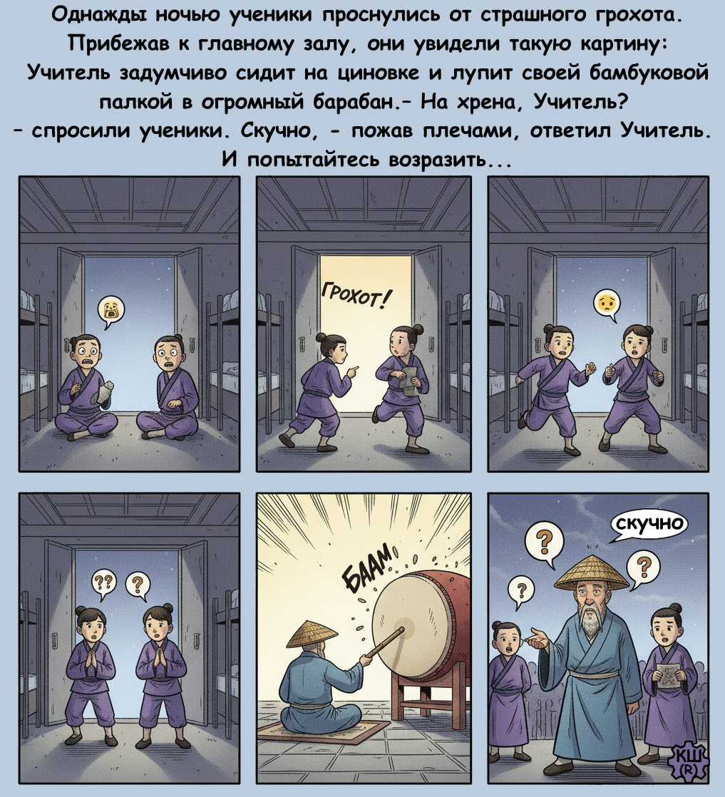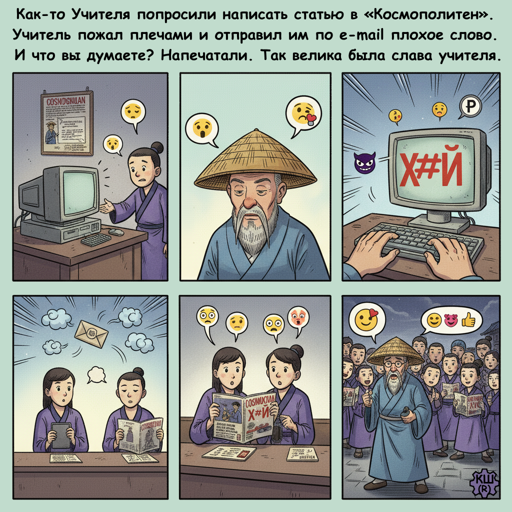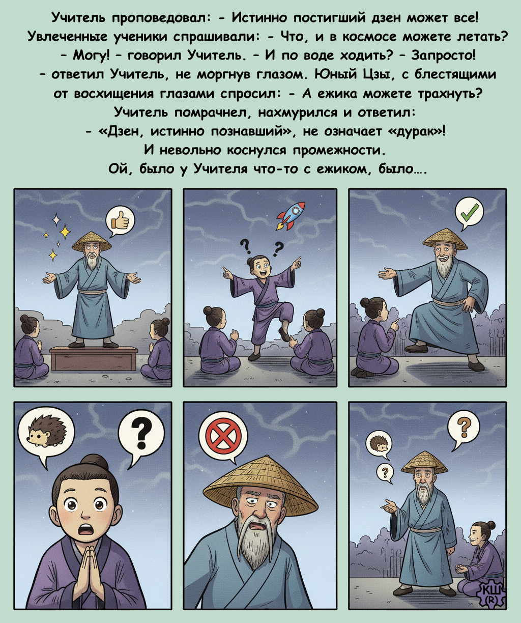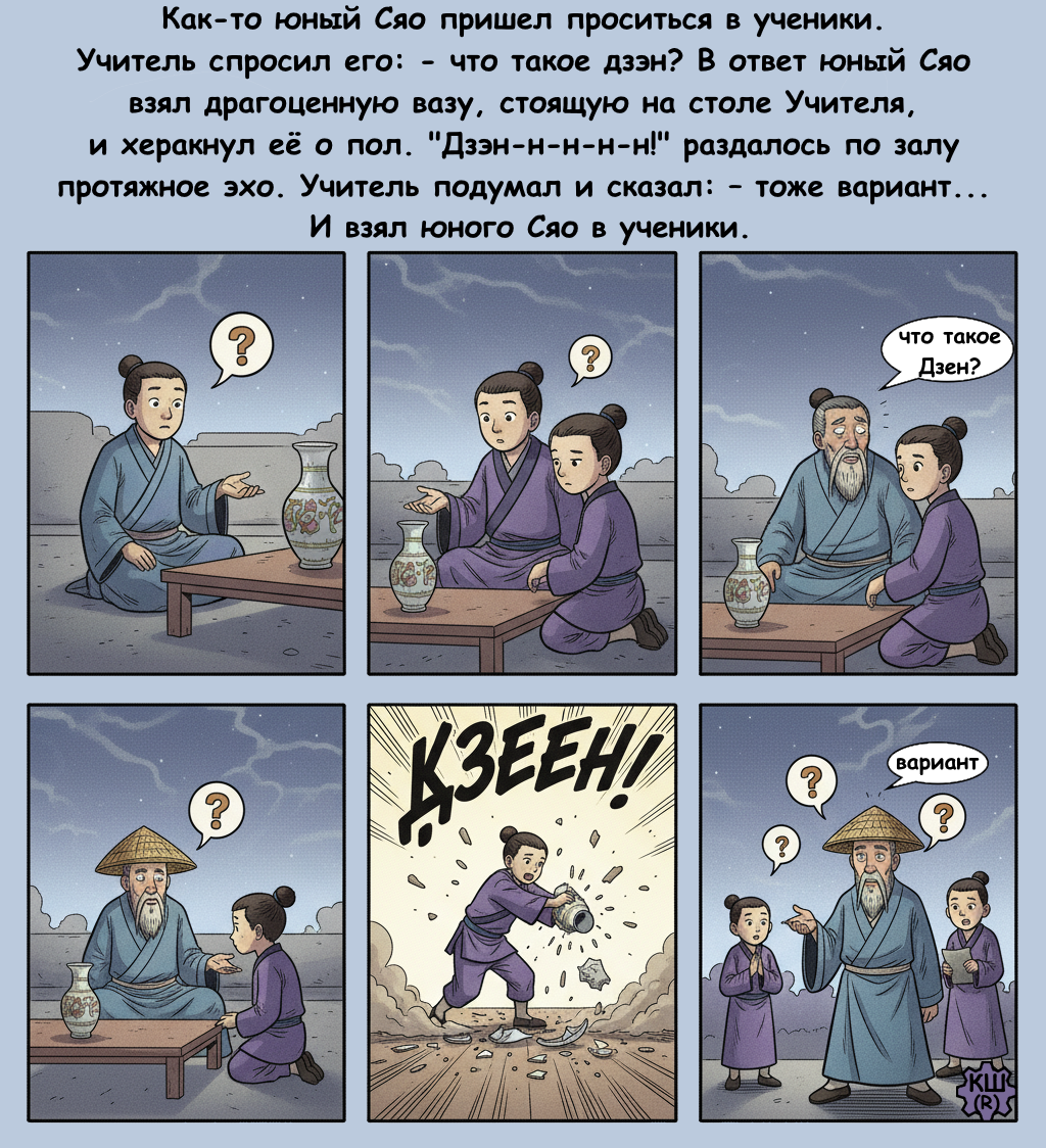 Автор: Коматоз ШестерёнЯ продолжаю свои эксперименты и сегодня будем постигать Дзен! Нет, не дзен от яндекса, а дзен от Великого Учителя Сунь Ху. У меня есть подозрение, что мой дед был с ним знаком. Ибо как-то раз к деду пришёл какой-то «реальный пацан» Дед что-то «перетёр» с ним, и чувак свалил. Я спросил: — дед, а с какого такого бодуна вы с ним ботали по фене? Дед треснул меня палкой по жопе, а потом произнес афоризм: — С каждым надо говорить на его языке! Он был мудрым человеком и добавил: — ты никогда не пробовал общаться с толпой гопников в темной подворотне таким образом: «Милостивые государи, вы неправы…»?