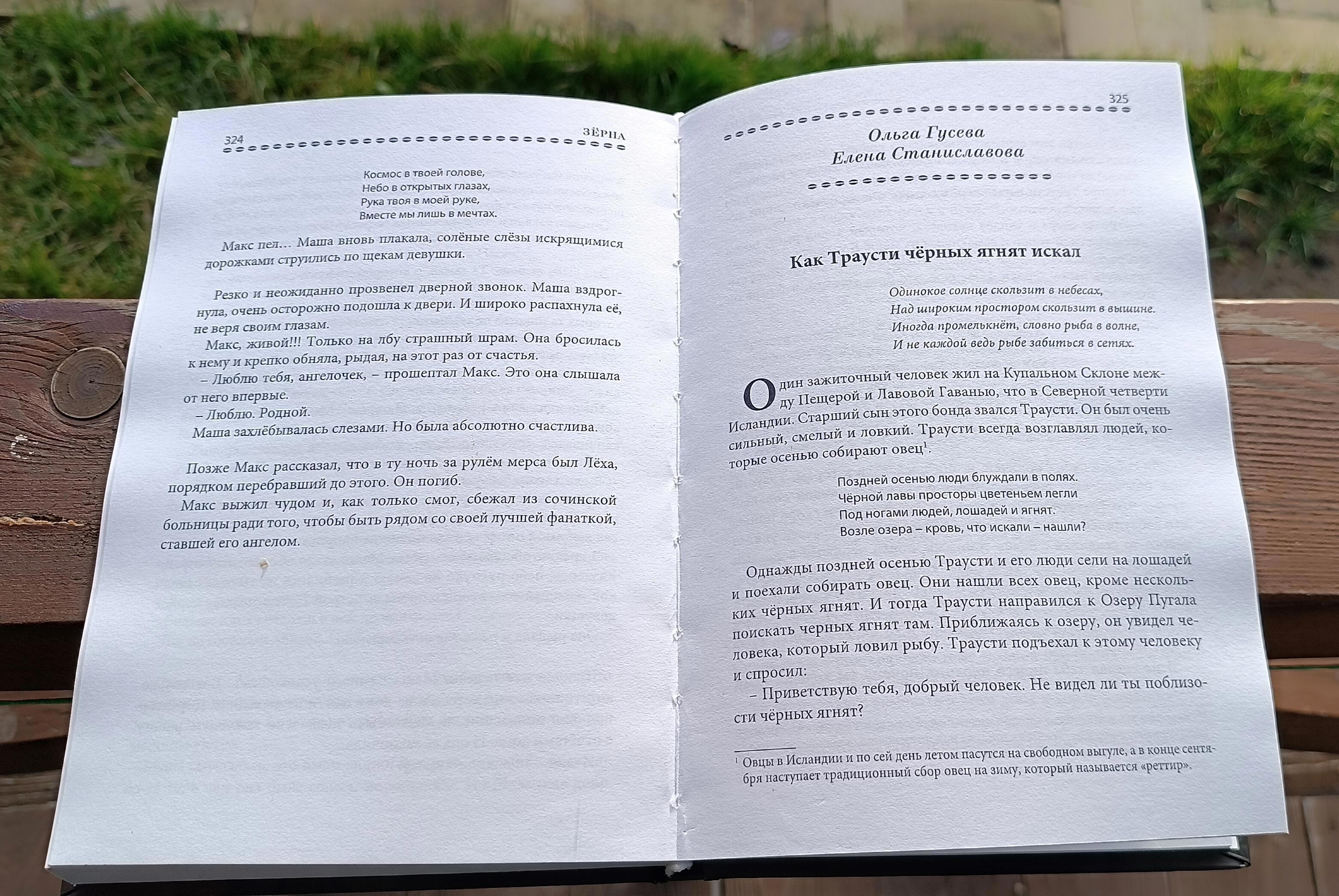 Теперь добавлю туда ещё один сборник. Мы посылали в него одну нашу соавторскую сказочку "Как Траусти чёрных ягнят искал". Она опубликована на АТ, её можно прочитать и послушать