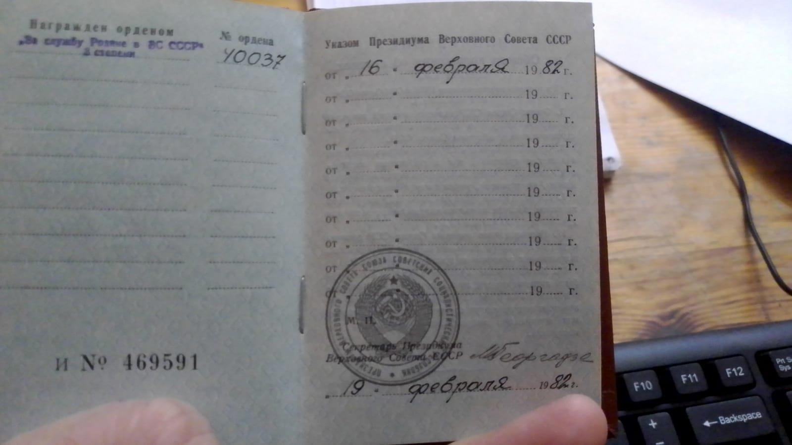 Он стоит в орденской книжке моего дедушки Николая Петровича Капелькина, награжденного орденом "За службу Родине в ВС СССР" 3 степени.