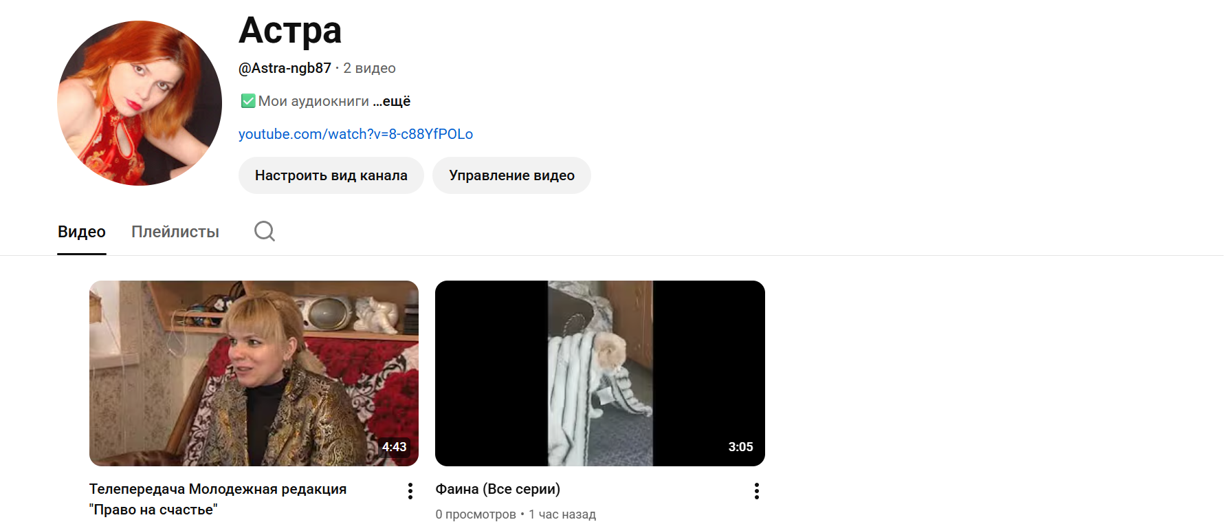 Автор: АстраСоздала свою страницу на YouTube. Тема канала:
