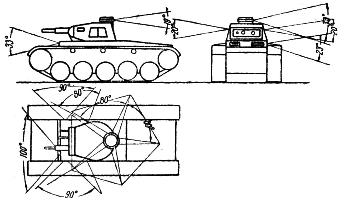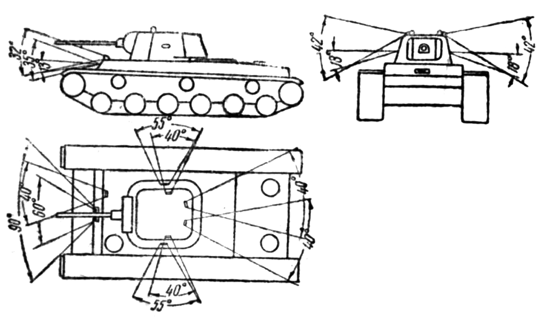 Командиры обоих танков имеют круговой обзор - в первом случае с помощью перископа кругового вращения и ком. башенки на КВ-1с, в втором - только комбашенки. У немца небольшое преимущество перед КВ-1с - там поле зрения одного перископа - 80 град. против 70.