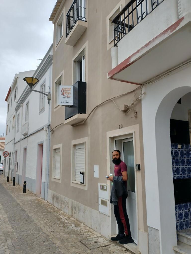 Собственно, это не гостиница, а таунхауз, поделённый на дольки. В нашей дольке были и туалет, и душ, и кондиционер с охлаждением и нагреванием, а на этаж ниже - общая кухня. Вот и наш сосед вышел. Хозяйка не заморачивается, не встречает гостей, а даёт инструкцию, где взять ключ от входной двери и от номера. Вон видите - слева от соседа коробочка на стене? Она закрыта на код, а в ней ключ. Удобно, доступно, чисто, есть всё необходимое и рядом с морем. Невольно вспоминаются сараи и пристройки в курортных городах СССР - "рупь за ночь за койку" и гуляй рванина. Мы были молоды, да и ничего лучше не попадалось. В кемпинг или гостиницу, в санаторий - по особому блату.