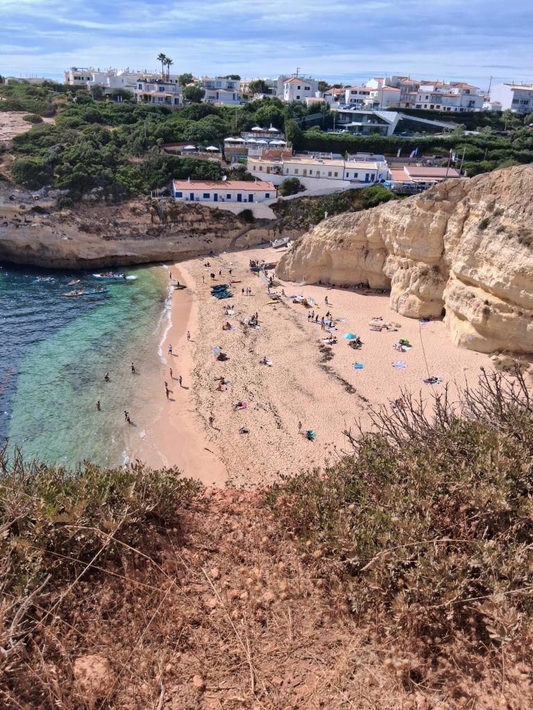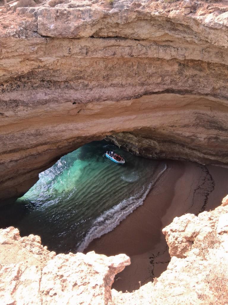 В 45 км от Лагоса какие-то знаменитые пещеры Benagil Cave - Бенагил пещера. С 2024 года доступ в пещеру Бенагил разрешён только с лицензированными экскурсиями на лодках или каяках. Купание и самостоятельные посещения строго запрещены. В гроте возможны только разрешённые экскурсии, а водным судам больше не дают причаливать к пляжу. Bведены ограничения на количество судов, находящихся в пещере одновременно, а время пребывания одной лодки ограничено двумя минутами. Мы вниз не пойдём - это отнимет несколько часов, которые так нужны, чтобы отдохнуть, но полюбуемся сверху.