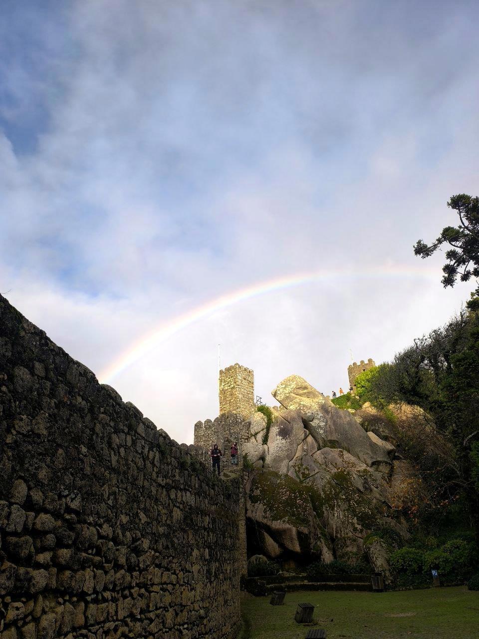Вид со стен замка... Тут не объяснишь. Это надо увидеть. Представьте. Древние стены. Квадратные башни. Справа - стена уходящего дождя и радуга, которая сияет на ее границе. Слева - сияние вечернего солнца. Не само солнце - только сияние. А впереди, прямо перед вами, на огромной высоте холмы. И за холмами город. И океан. Всё, всё под ногами, всё открыто взгляду. Всё светится. Всё дышит только что прошедшим дождём, свежим ветром, веками. И жизнь оттуда кажется бесконечной.