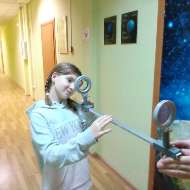 Итак, вчера я приехал с младшей внучкой в Астрокомплекс при МГПУ, где Алеська при помощи взрослых оценила, каково было Галилею и Кеплеру с их телескопами. За отсутствием звезд смотрела на бюст Гагарина в торце коридора:
