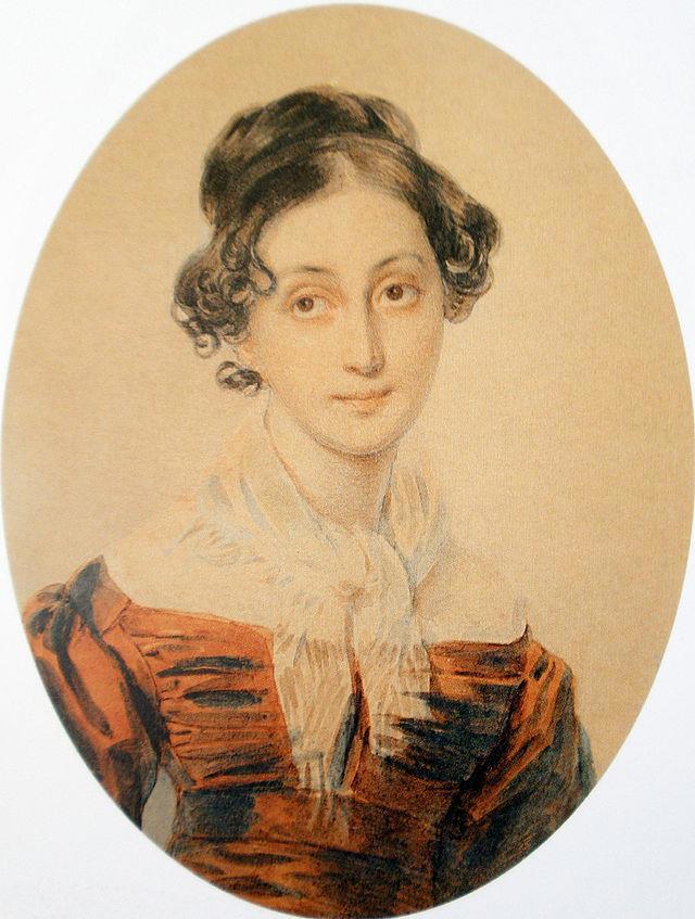Автор: Наталья ВолгинаМалютка Оленина отнюдь не сразу заняла его воображение. Она не сражала наповал: большой нос, маленькие губы; пожалуй, прекрасного в ней были только глаза; общеизвестный портрет Ореста Кипренского, где прелестная куколка изображена вполоборота, несколько приукрашивает Аннет. На позднейшие дагерротипы больше похож портрет кисти Петра Соколова. Шел ей тогда девятнадцатый год, была она миловидна, кокетлива и знала себе цену.