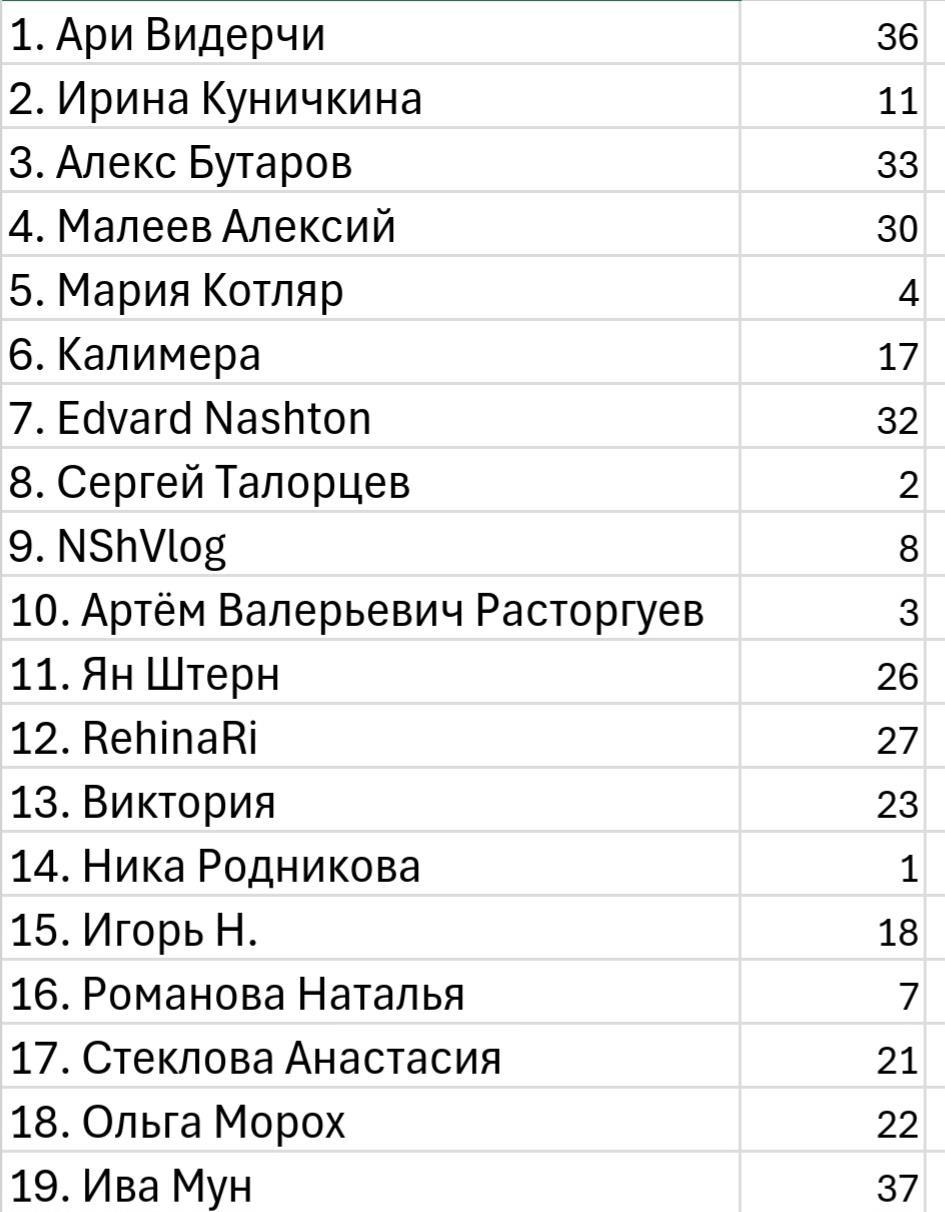 Список участников на 13:00 24.11 по мере подачи заявки (включила всех, кто проявил интересе):