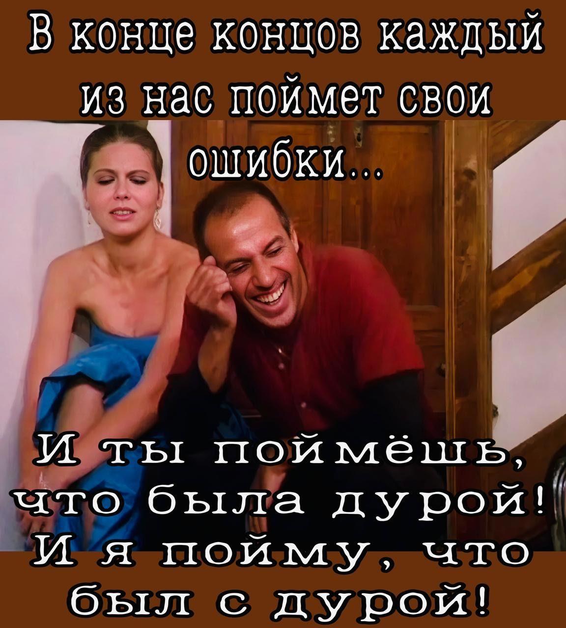 - Таня! Получается Олег тебе нравится, но он тебе не подходит. Было бы здорово - ежели б в начале ты узнала подходит он тебе или нет, а потом ...а потом - ты приходишь ко мне, блять, за советом!