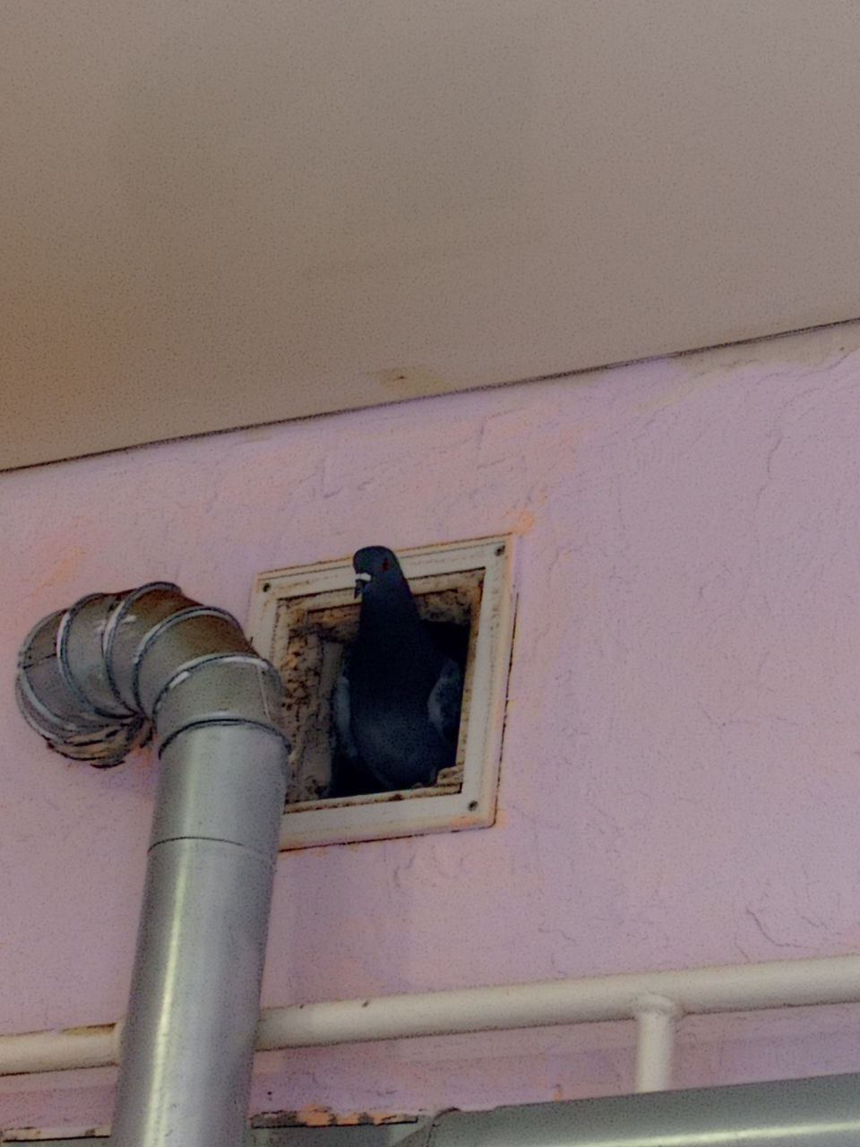 Дня два назад вынул одного голубя из вентиляции. Шуршал там, курлыкал. Я залез повыше, смотрю — он на меня в ответ. Искра, буря, курлык~