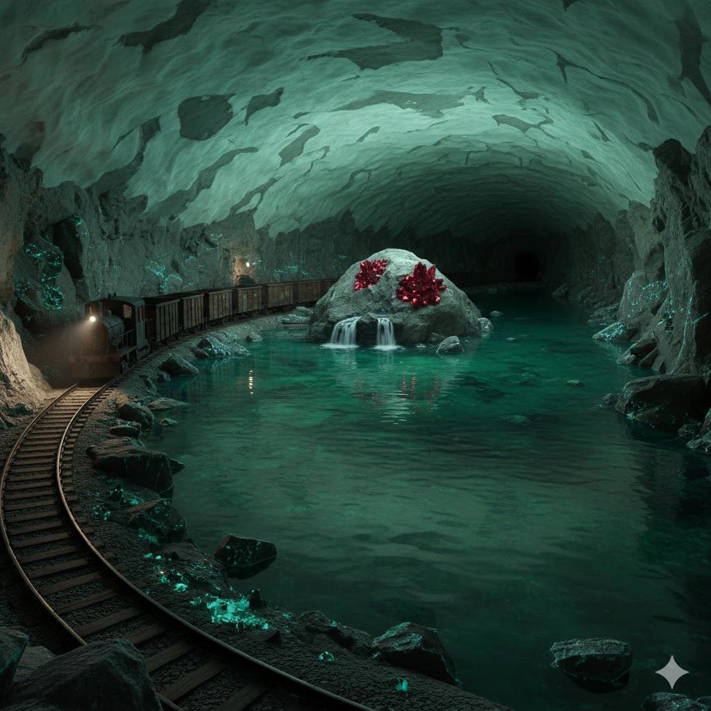 А вот картинка подземного озера, которую Gemini сделал с первого раза по описанию. Не то, что я себе представлял, но кто сказал, что ИИ виноват. Может, это я херово описал в книге.