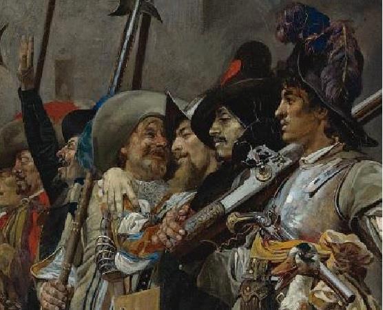Похоже, что командирам удалось сохранить остатки дисциплины в представленном разношерстном отребье (одеты и вооружены кто во что горазд, ни о какой регулярной армии речь не идет, голимые наемники, недоповешенный сброд). После боя их удалось построить, что, учитывая обильные возлияния было не просто (Правда не всех, один явно загулял. На нем стоит остановится отдельно. Стоит отметить что у него только холодное оружие и больше ничего, ни кольчуги, ни стальных нагрудников, ни шлема как у его коллег. Ни тем более огнестрельного оружия. Пистолеты для лохов, ножи выбор мастеров, а алкоголь сохранит тебя надежней брони, да-да, так все и было. Все пропито, но после боя цель достигнута, персонаж в хлам).