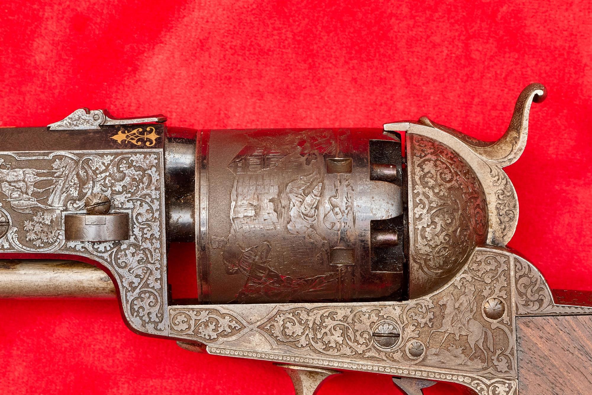 По виду очень похож на револьвер Нормана из коллекции Эрмитажа. Правда, приклад за полтора с хвостом века где-то потеряли, а он там был для своего времени очень интересный – стальной «скелетный», но с оболочкой из красного сафьяна.