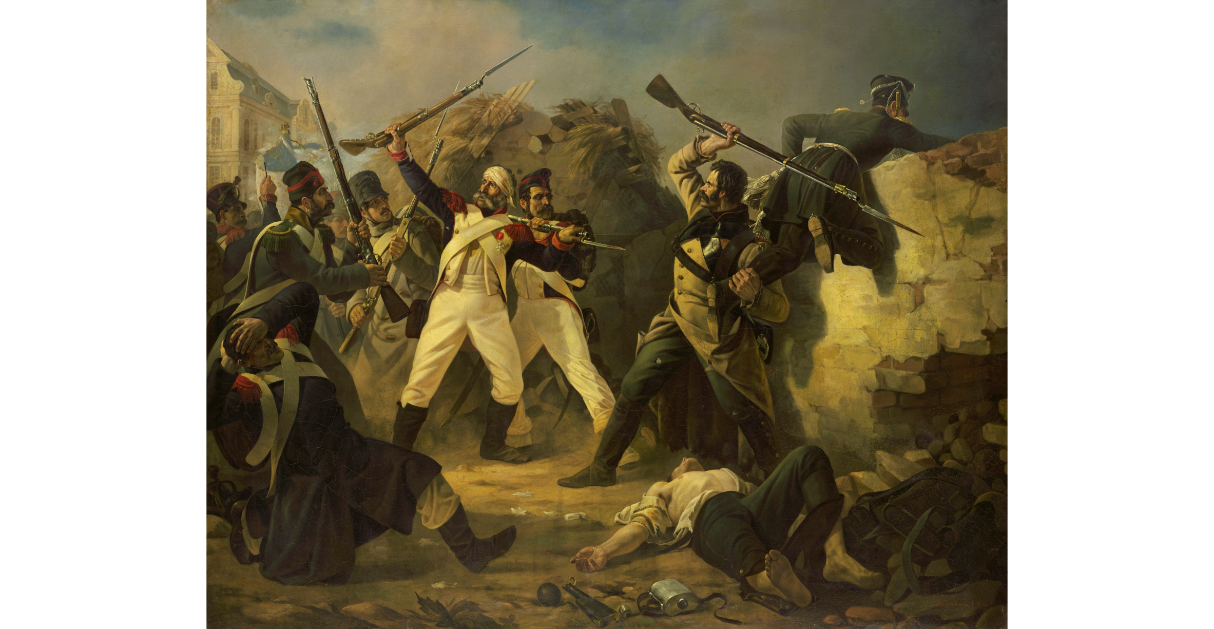 Как подсказали коллеги, на барабане гравировка по мотивам популярной тогда картины: «Подвиг гренадера лейб-гвардии Финляндского полка Леонтия Коренного в битве под Лейпцигом в 1813 г»