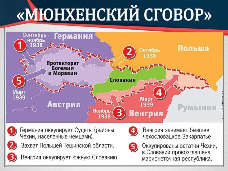 Ну и, наконец, самое моё любимое - оккупация Чехословакии и "Мюнхенский сговор" от 1938 года.