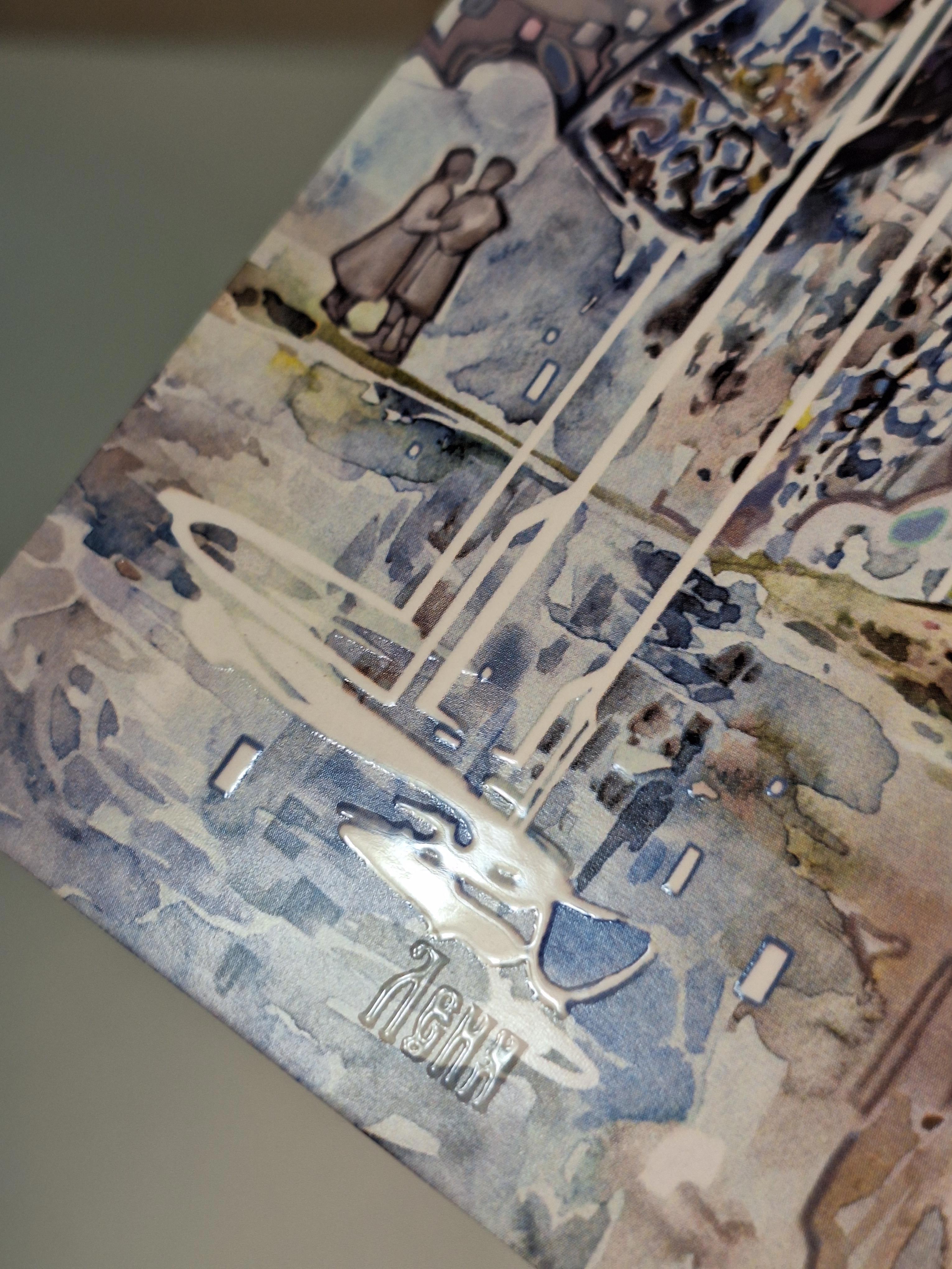Еще я рисовала туда цветочные наклеечки, где перегнула с общей композицией (и с тех пор мне только открытки рисовать дают)