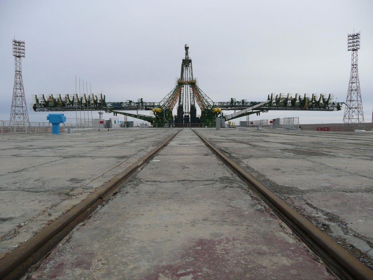 Отсюда Гагарин полетел в космос. А ракету на старт везли на установщике по рельсам.