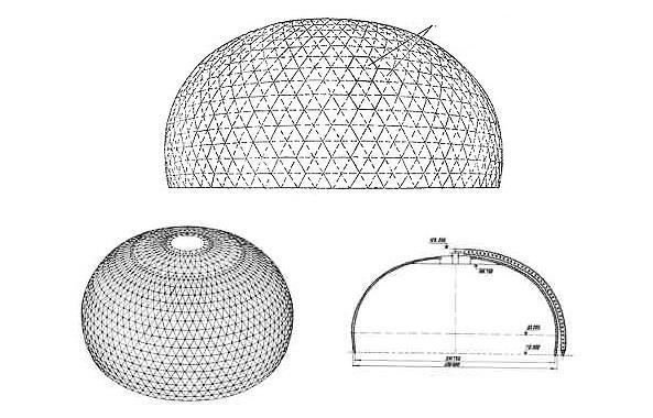 Для выделки стальных конструкций, имевших непрямолинейную форму, рядом построили заводик, но вскоре производство пришлось переналаживать — уже при подъеме второго яруса купола пространственная решетка начала потрескивать, кое-где стрежни теряли устойчивость. Решение нашли в том, чтобы усилить, то есть утяжелить, конструкцию. Да-да, помним про грунты.