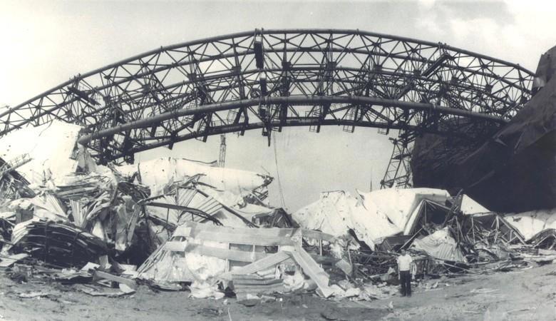Произошло это в 7:30 утра, за полчаса до начала рабочей смены и оттого, к счастью, никто не пострадал. Даже сторож, обязанный находиться внутри, был человеком грамотным и знал о недавнем обрушении висячего покрытия в Западном Берлине и свято выполнял правило «не спи под нестандартными конструкциями».
