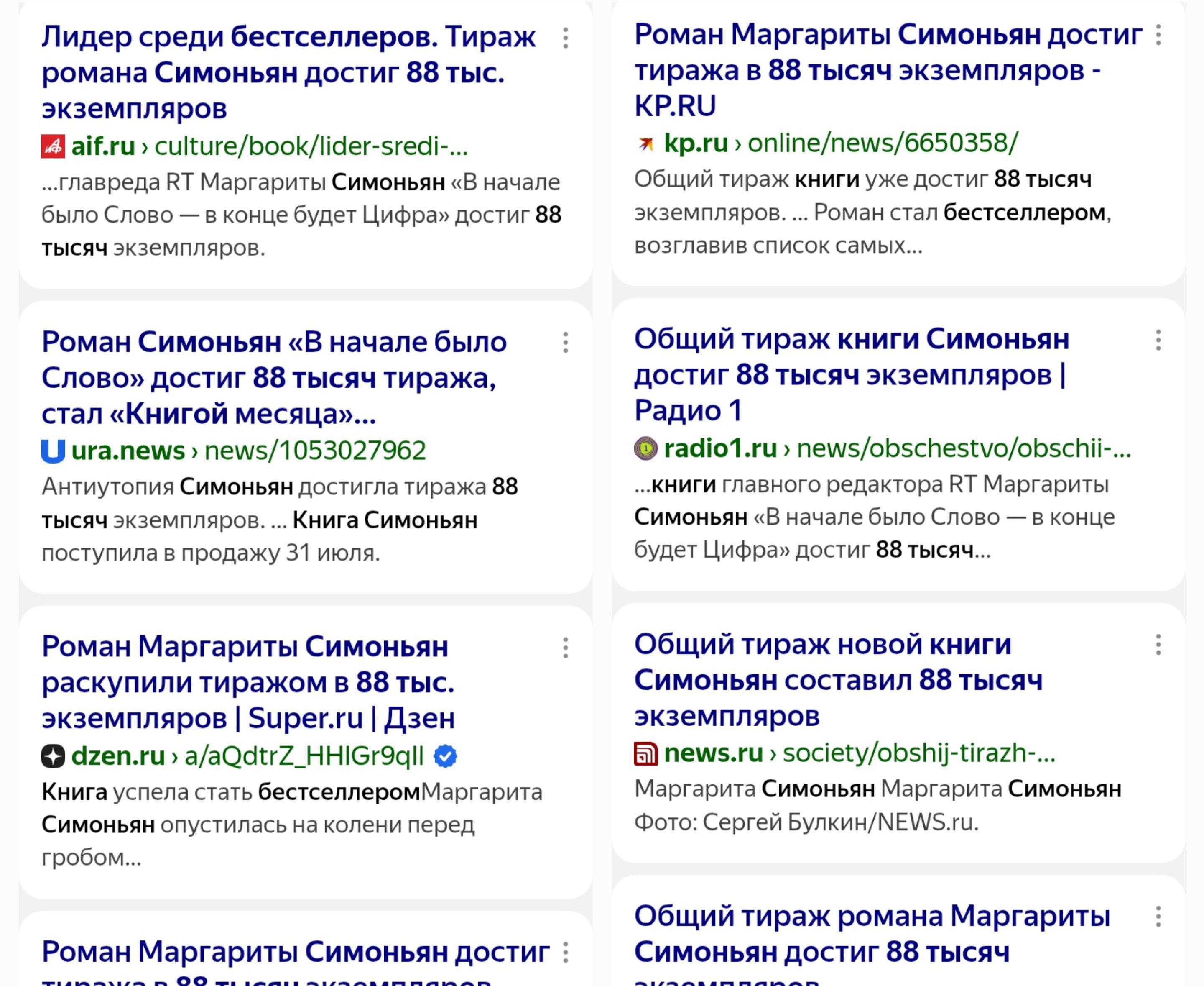 Если у тебя есть ручные СМИ и проплаченный Фантлаб. И, конечно, немножко баблишка, разумеется, за счёт налогов граждан этой страны. В том числе твоих, компрендо. То есть: Маргарита Симонян всё-таки продала тираж, но есть нюанс.
