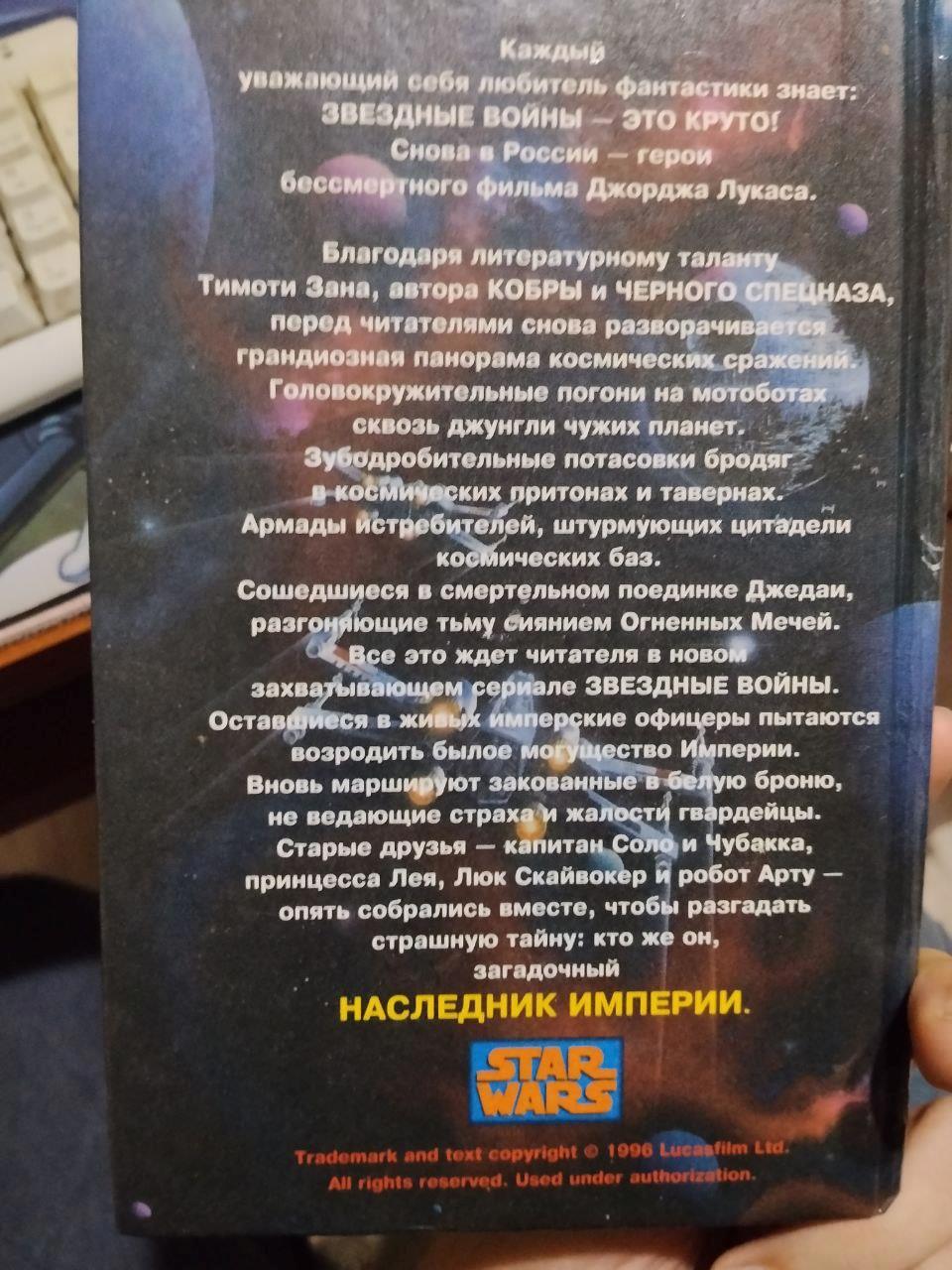 Автор: Руслан БирюшевДобыл тут "Наследника Империи" Тимоти Зана в русском издании 1996 года. Перевод, конечно. вызывает умиление. Отмечу сразу - он литературный и хорошо читается. Но вот терминология.... что называется, ещё не устоялась.