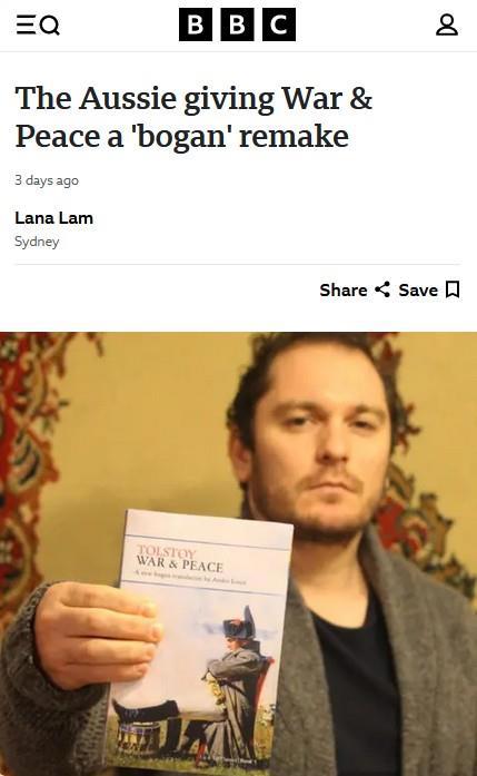 Автор: Дмитрий Алексеевич ИгнатовТретьего дня BBC поделились курьёзной новостью. Австралиец Андер Луис занимается адаптированным переводом «Войны и мира» с использованием местных жаргонизмов. Роман начинается со слов «черт возьми» (bloody hell), русские княжны превращаются в «бабенок» (sheilas), а князья ― в балбесов (drongos). Девушки описаны как крошки (chicky babes), князь Василий — важная шишка (a pretty big deal), а княжна Болконская — не просто красивая, а прямо чумовая красотка (smoking hot).