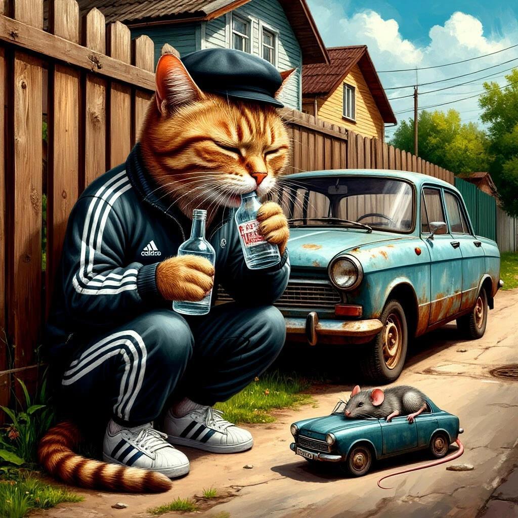 1. Банда хвостатых (дерзкий кот, любитель выпить и его верный друг мышицин).